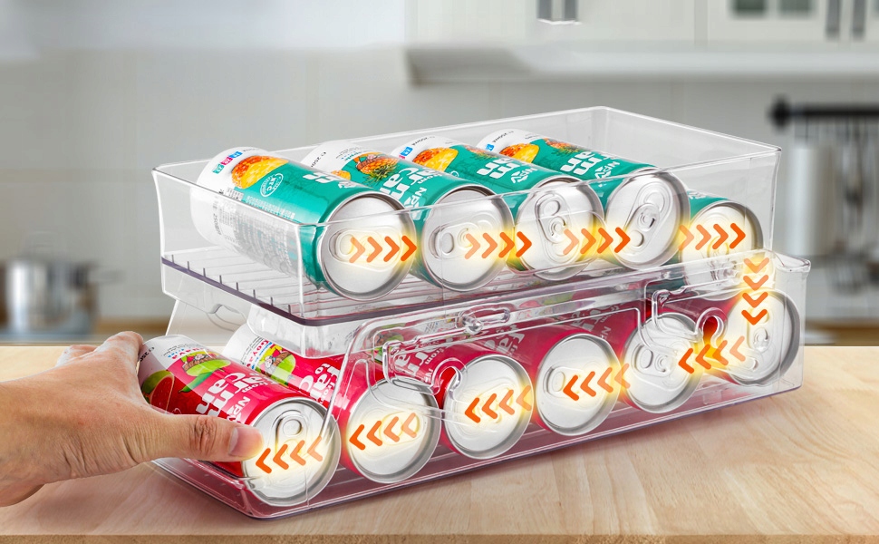 🍹 【Автоматическое прокат】 после удаления банки из нижнего уровня, верхняя банка автоматически свернут до повторного, что очень удобно в использовании. морозильная камера, кухня, кладовая, шкафы, столешницы или гардероб.