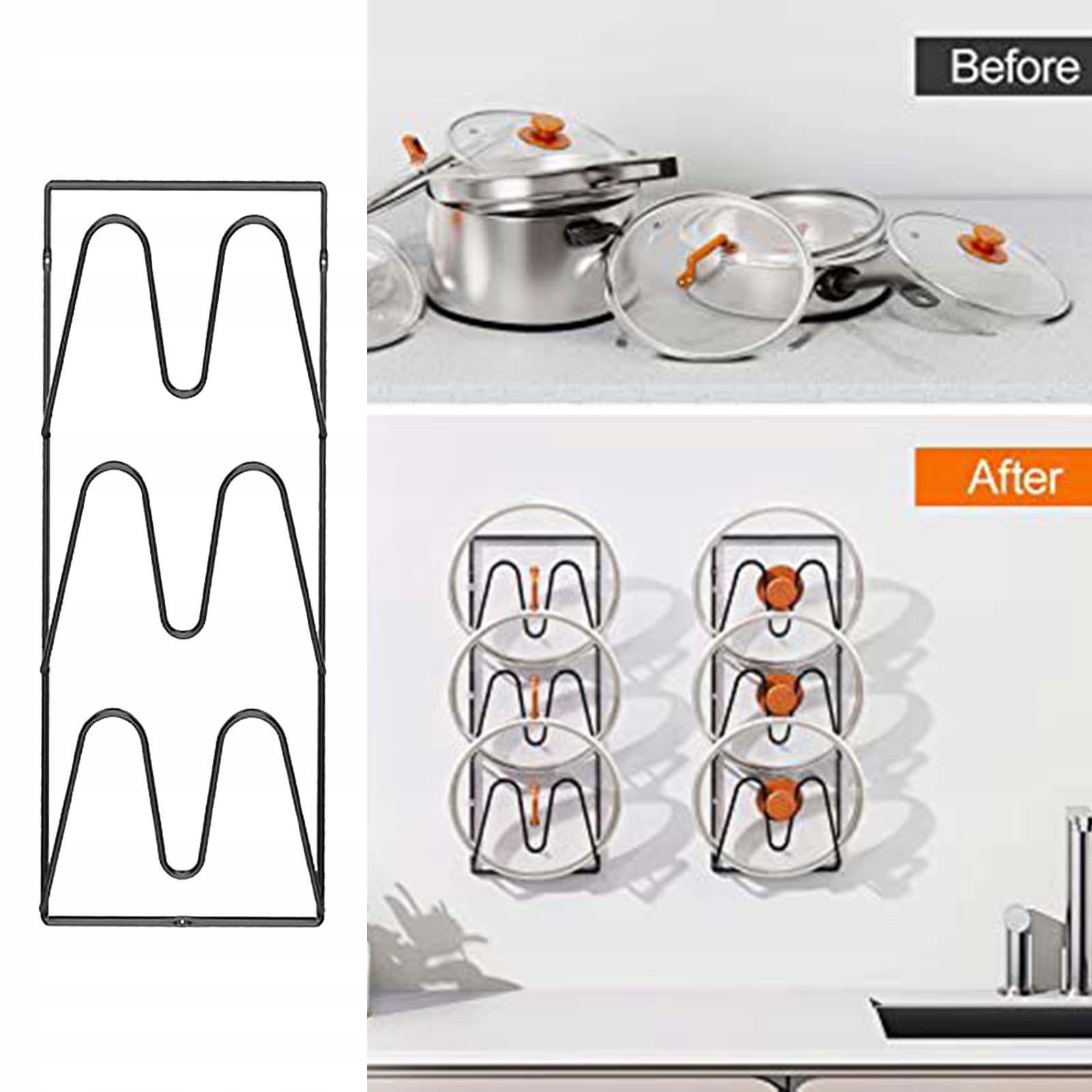 Организатор для крышки для горшки не только хранит горшки для горшков, но также может использоваться для подвесы ложки и другой кухонной посуды, увеличивая пространство для хранения и заказывая кухню.