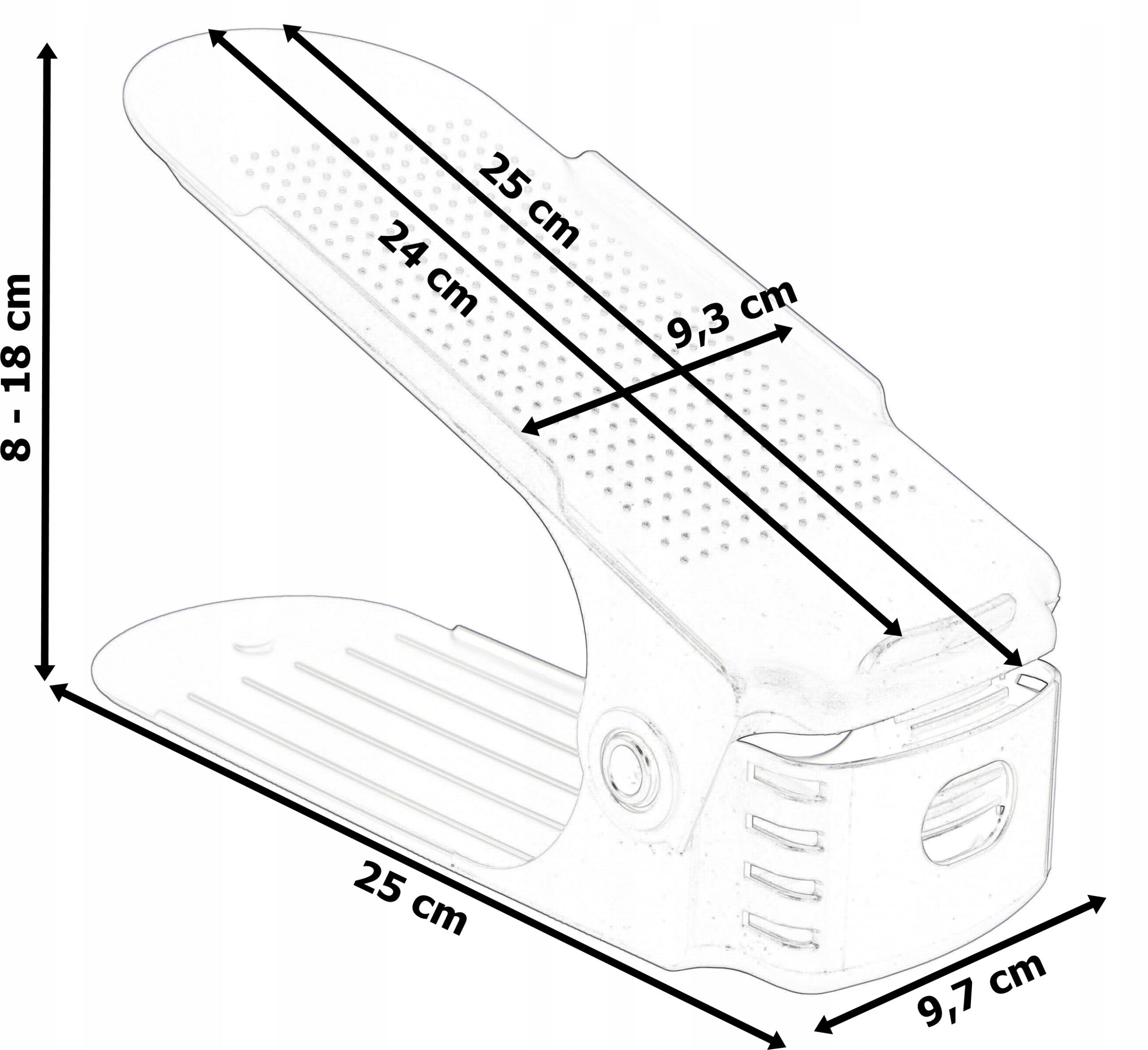 Держатель подходит для всех типов обуви — спортивной обуви, обуви на высоком каблуке и т. д. Занимая мало места, он удваивает пространство для хранения, складывая обувь друг на друга. Идеально подходит для хранения мужской, женской и детской обуви.