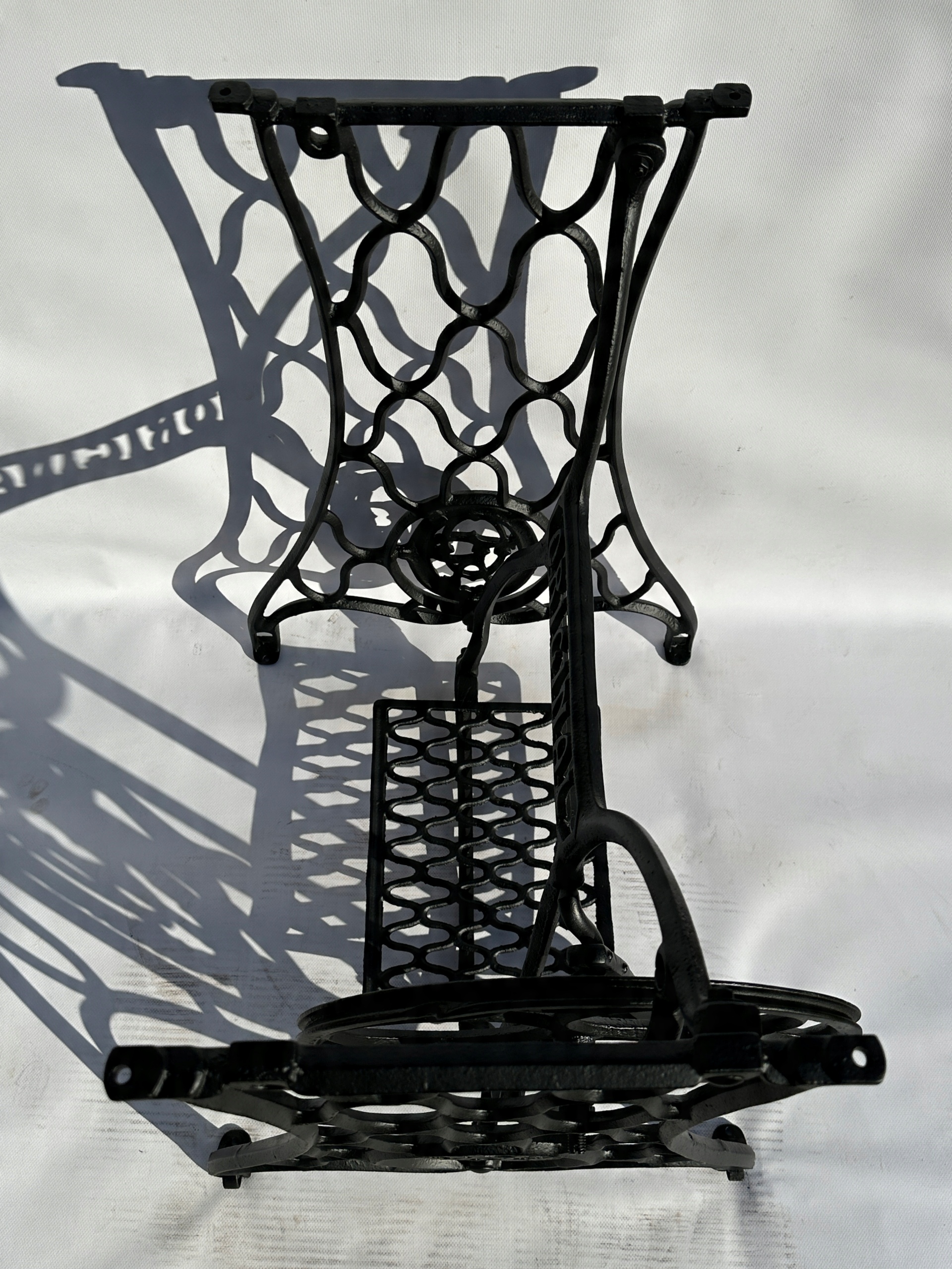 Предмет продажи — старая чугунная основа для ОРИГИНАЛЬНОЙ швейной машины. Очень красивый узор, встречается реже. Надписи THE SHIEFCHEN MASCHINE по бокам. Оба колеса расположены внизу.