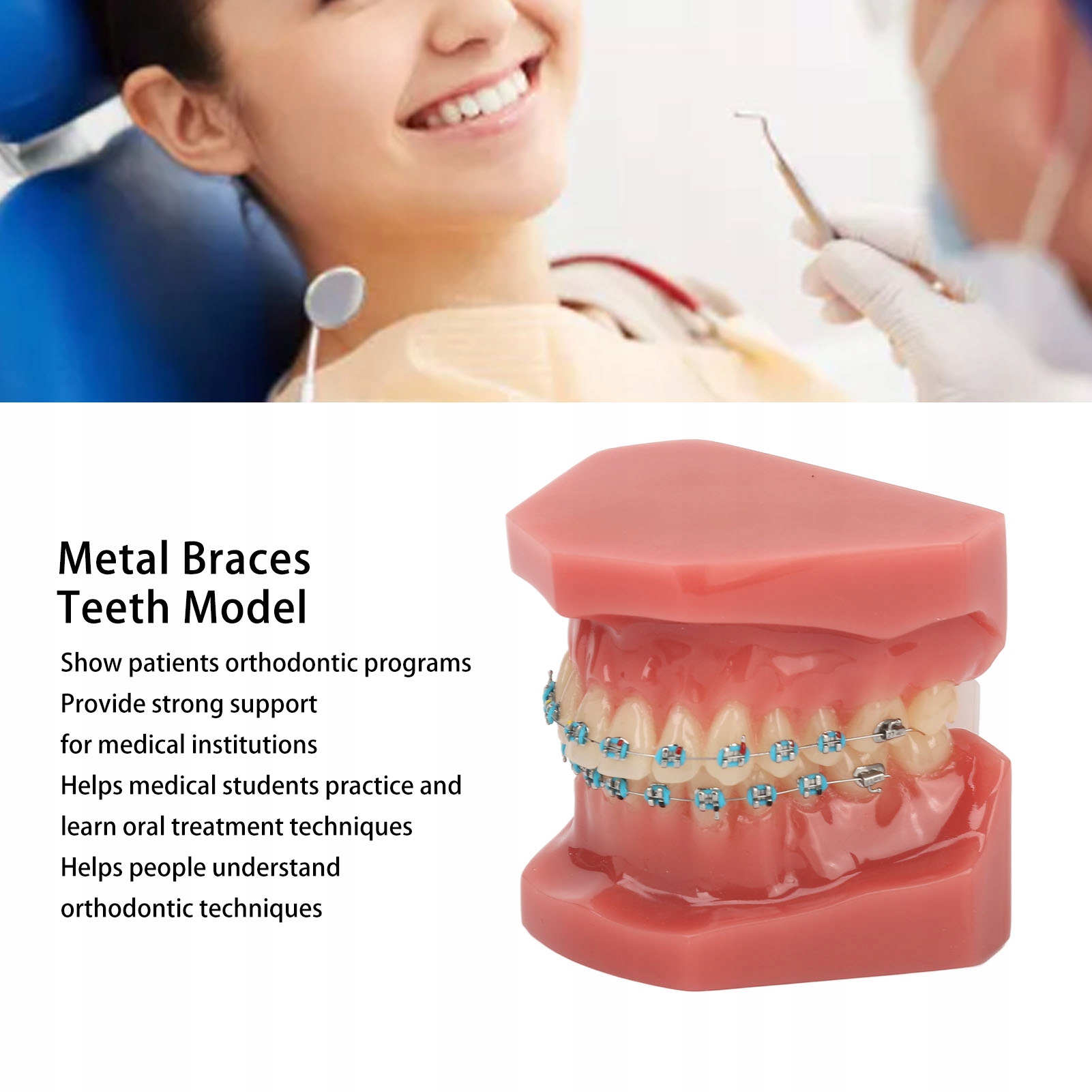 Функция: 1. Чистая структура: ортодонтическая модель, содержащая 28 зубов, принятые металлические кронштейны, которые могут четко показывать различные проблемы с зубами.