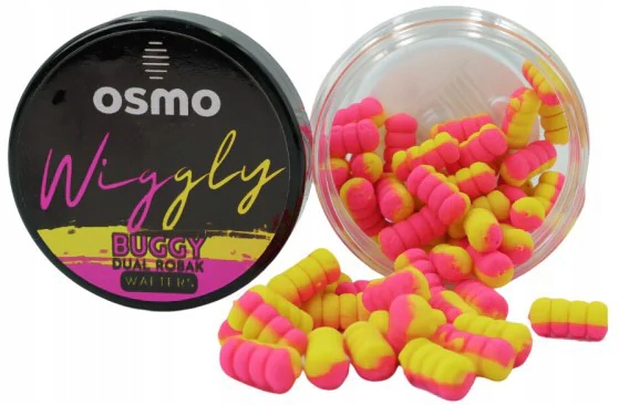 Wiggly — серия новых инновационных приманок Osmo. Они характеризуются уникальной формой, которая может ассоциироваться с червяком или пучком кукурузы на волосах. Внешний вид вместе с работой «СВАДЬБА» призван дополнительно стимулировать рыбу к активному кормлению. Приманка отлично показала себя во время длительных испытаний на воде, мы подобрали идеальную форму, аромат и цвет, чтобы приманки были максимально эффективными. Кроме того, форма волчка была адаптирована и разделена на так называемые модули. кольца, которые можно снимать, чтобы создавать композиции разных размеров и композиций. Один небольшой модуль отлично подходит для осторожной рыбы. Виггли, конечно, очень эффективен в целом, когда проявляет свои лучшие качества, и, отколов даже небольшой кусочек, мы можем выделиться в критической ситуации. Помимо методной кормушки, Wafters Wiggly также идеально подходит для бомбовой ловли, где прекрасно заменяет традиционную кукурузу. Osmo Buggy – червь, отличающийся использованием двойных, выразительных цветов – желтого и розового, которые прекрасно видны под водой и привлекают внимание рыбы. Кроме того, Wiggly Buggy имеет интересный и характерный, очень сладкий аромат. Сочетание цветов и ароматов создает еще одну эффективную и уникальную приманку, которую стоит добавить в свою рыболовную сумку!