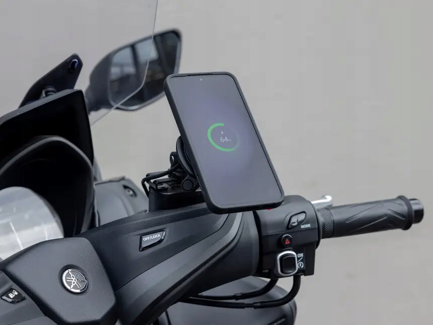На головке индикатора можно отрегулировать под углом, а рука имеет много точек оборота, что гарантирует свободу устанавливать смартфон под оптимальным углом просмотра, не мешая каким -либо элементам управления скутером или мотоциклом.