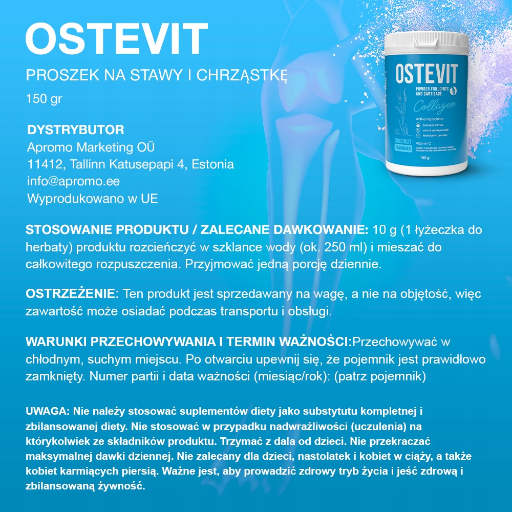 Просматривая «Остевит Колаген 150 г - Здоровье суставов и хрящей», вы можете быть уверены, что данный товар из каталога «Остальные» будет доставлен из Польши и проверен на целостность. В цене товара, указанной на сайте, учтена доставка из Польши. Внимание!!! Товары для Евросоюза, согласно законодательству стран Евросоюза, могут отличаться упаковкой или наполнением.
