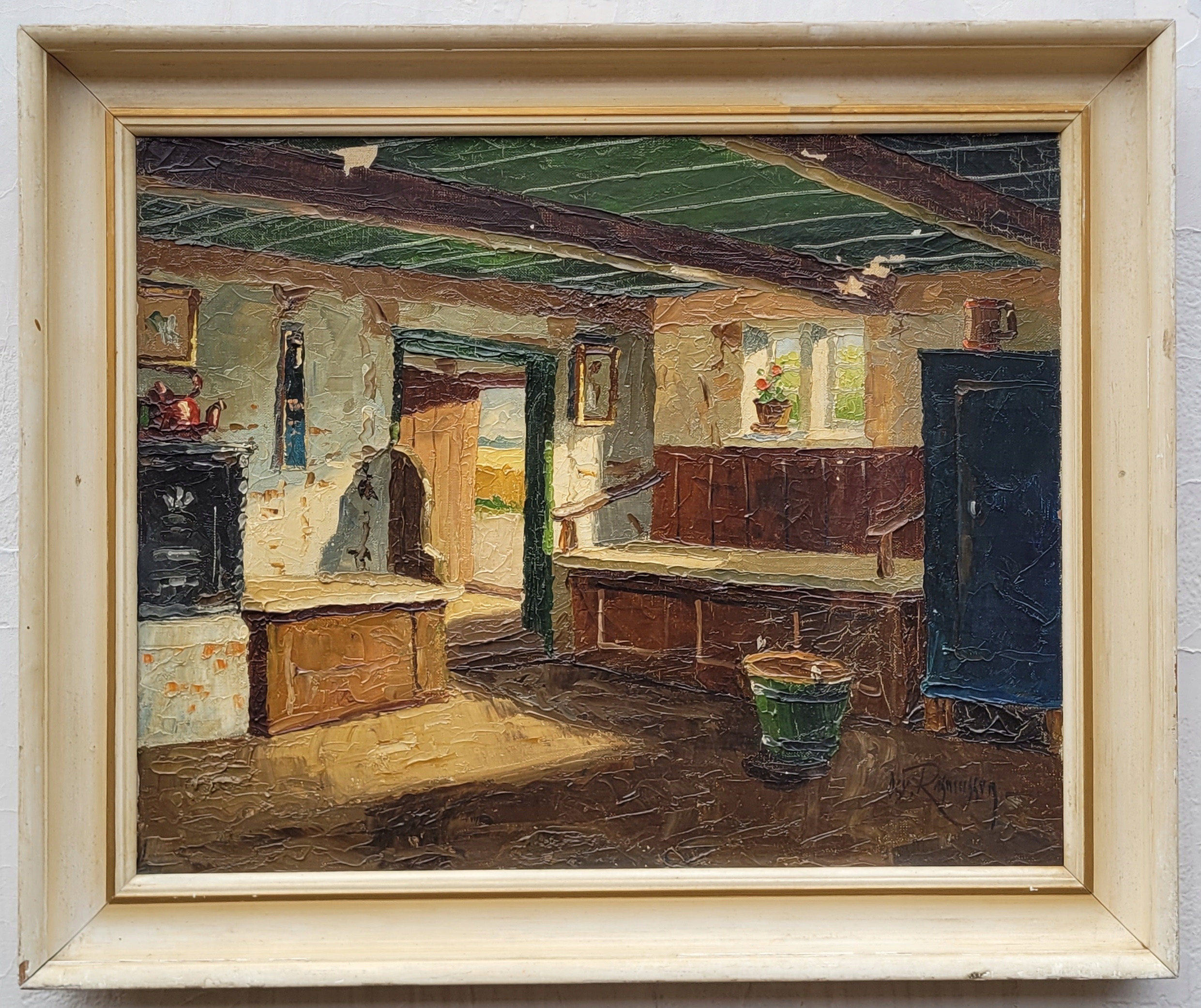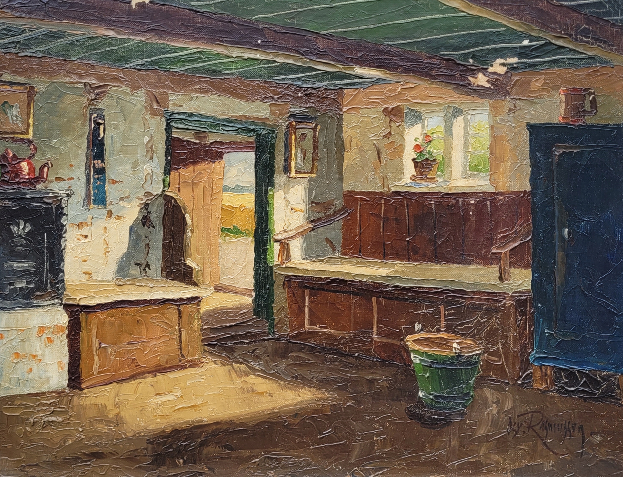 Тема продажи - красивая старая нефтяная картина "в старом доме".