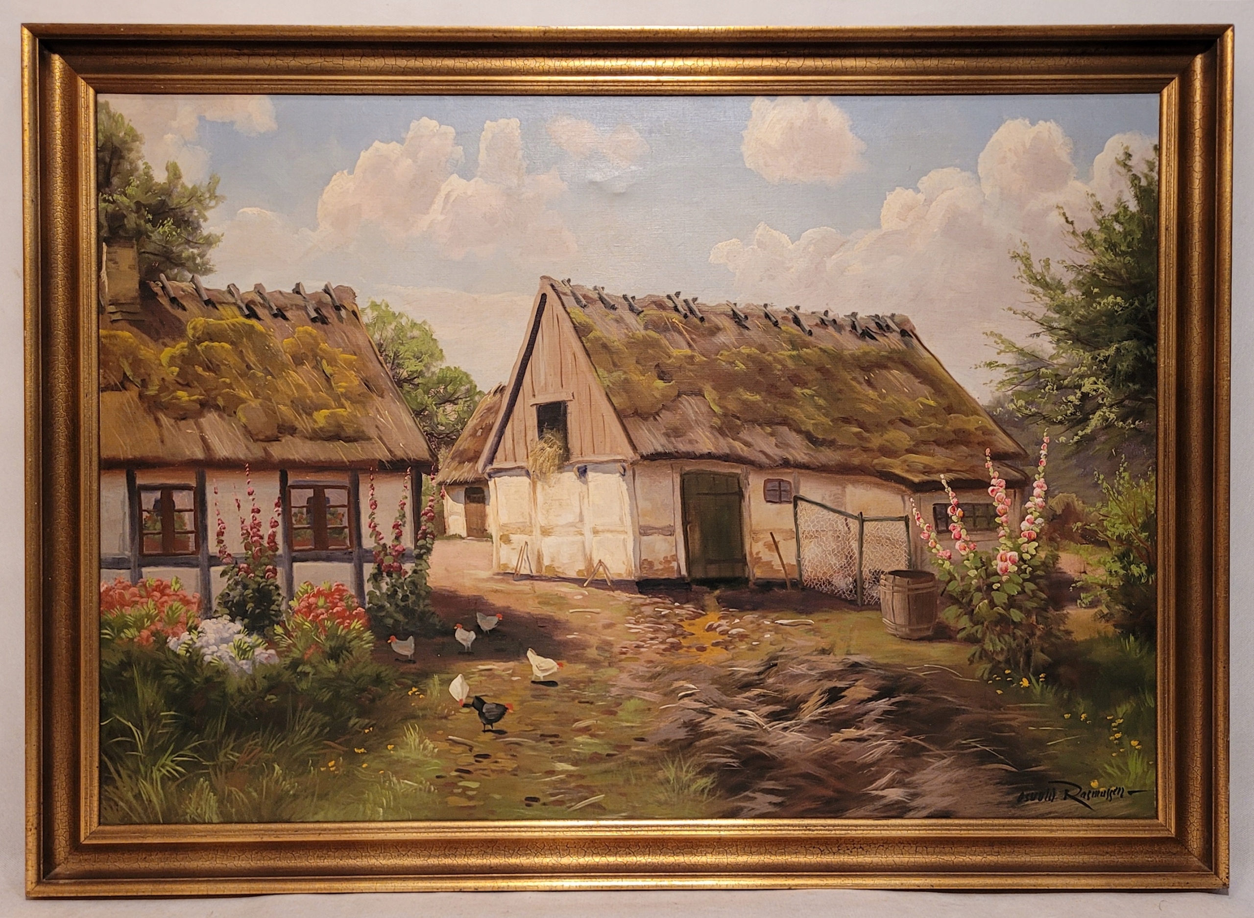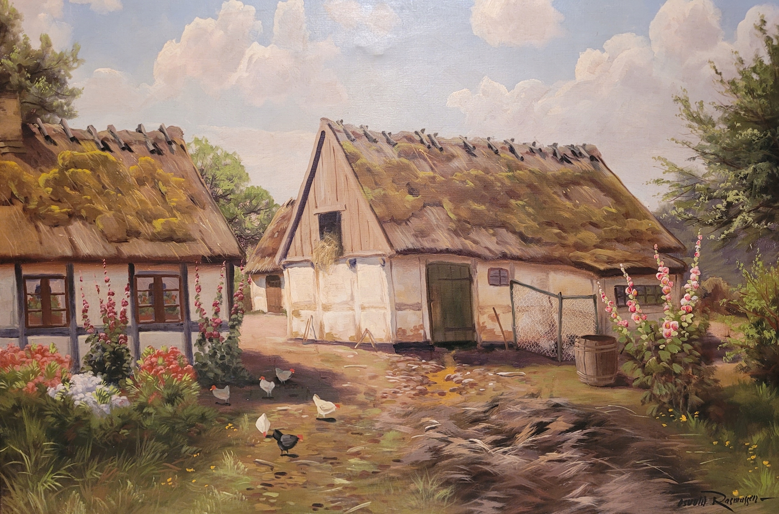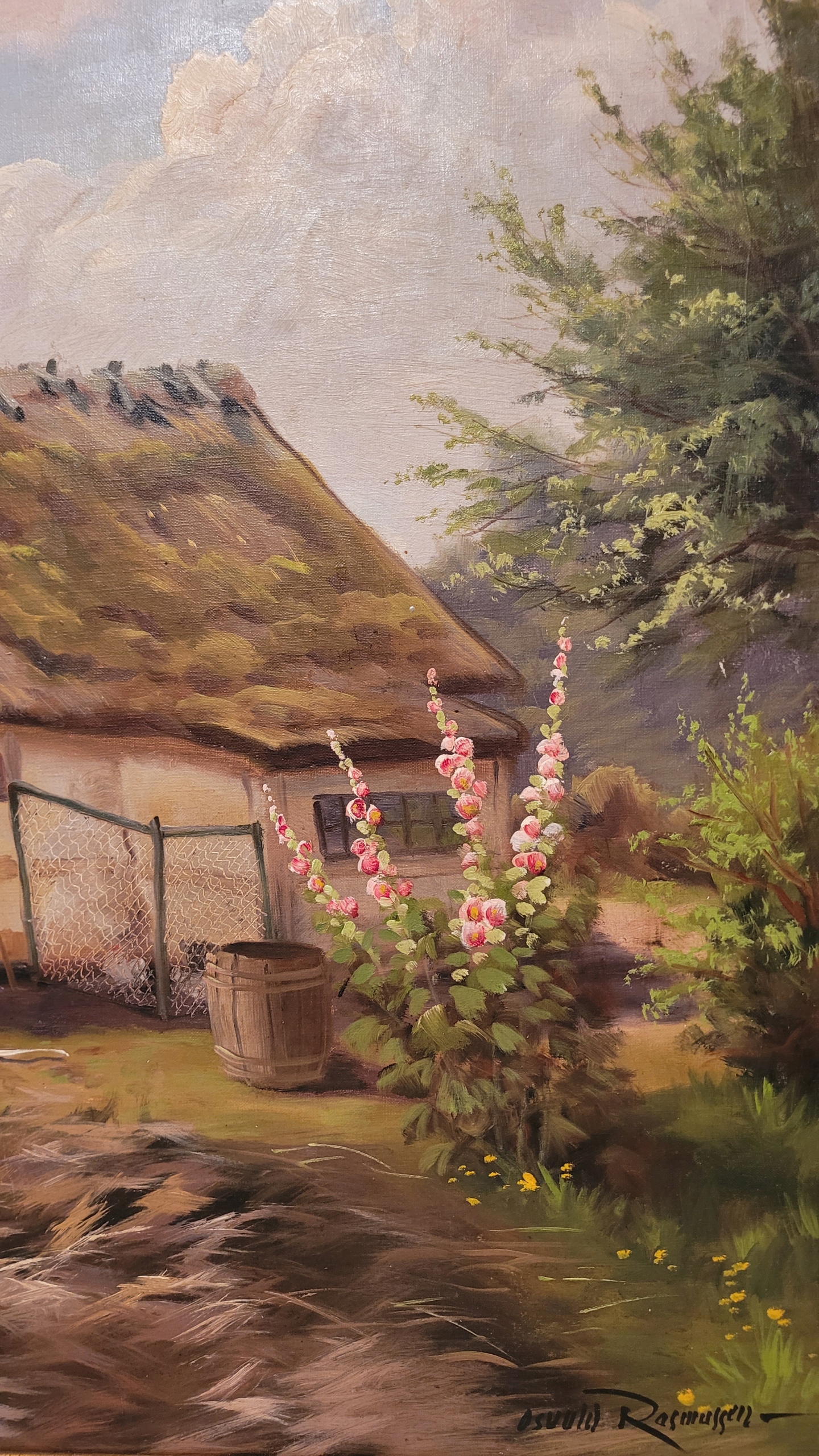ОСВАЛЬД РАСМУССЕН (1885–1972) — «ДЕРЕВЕНСКИЙ ПЕЙЗАЖ», старая картина маслом.