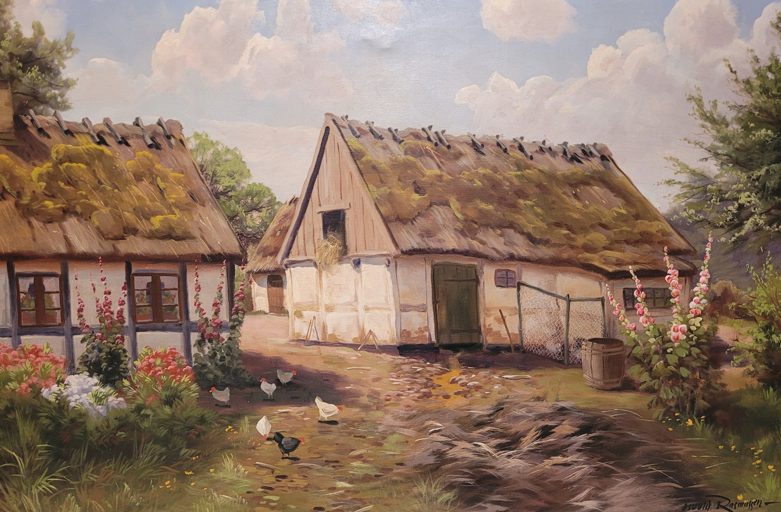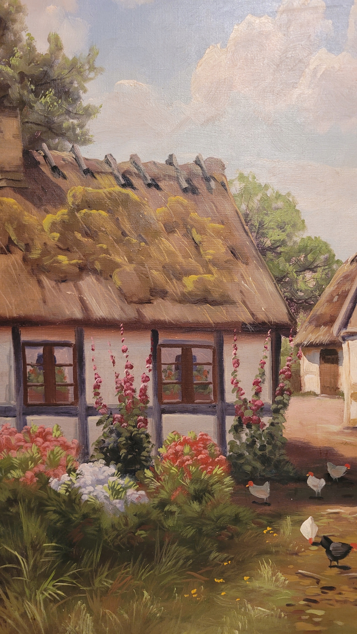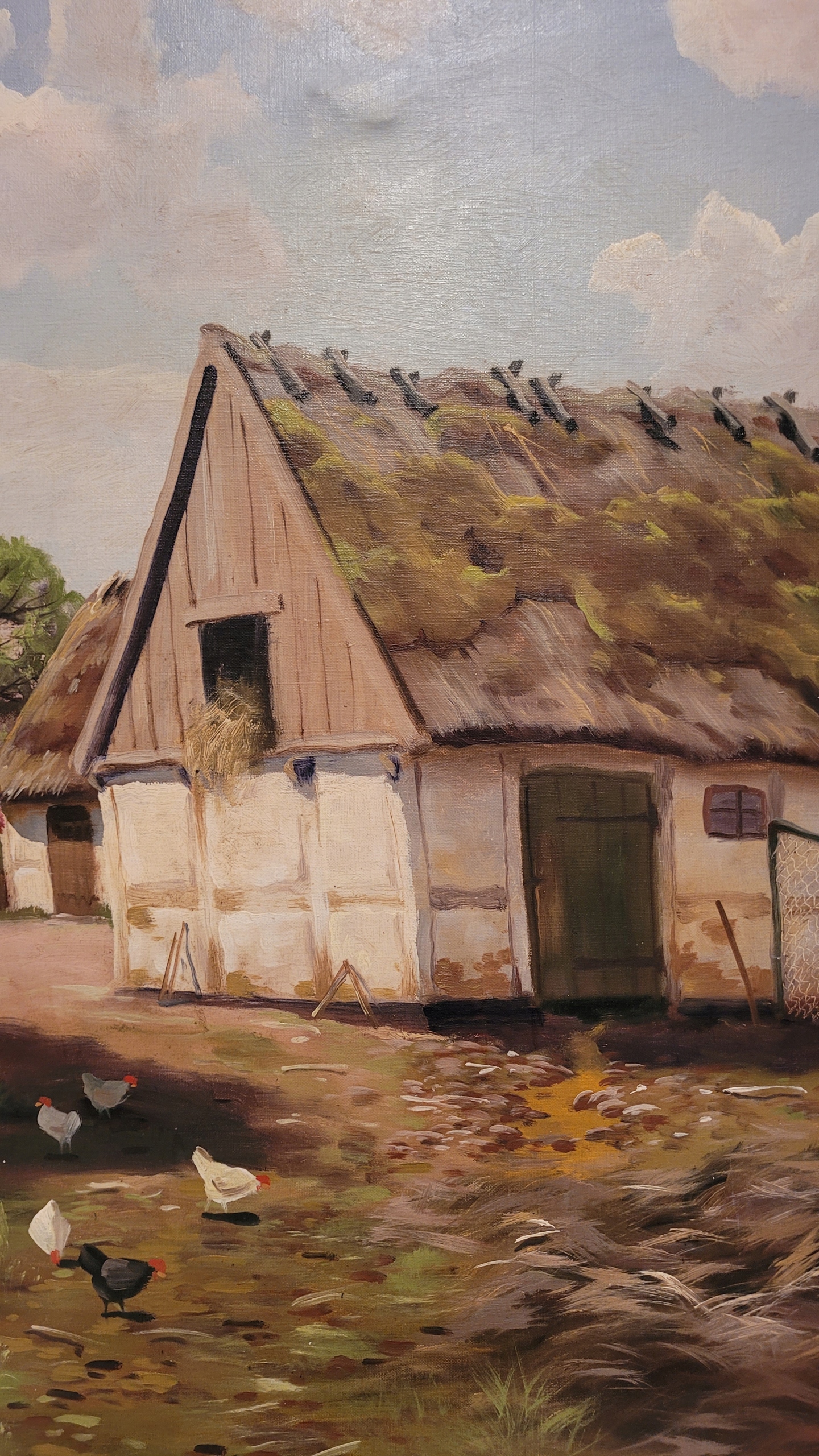 ОСВАЛЬД РАСМУССЕН (1885–1972) — «ДЕРЕВЕНСКИЙ ПЕЙЗАЖ», старая картина маслом.