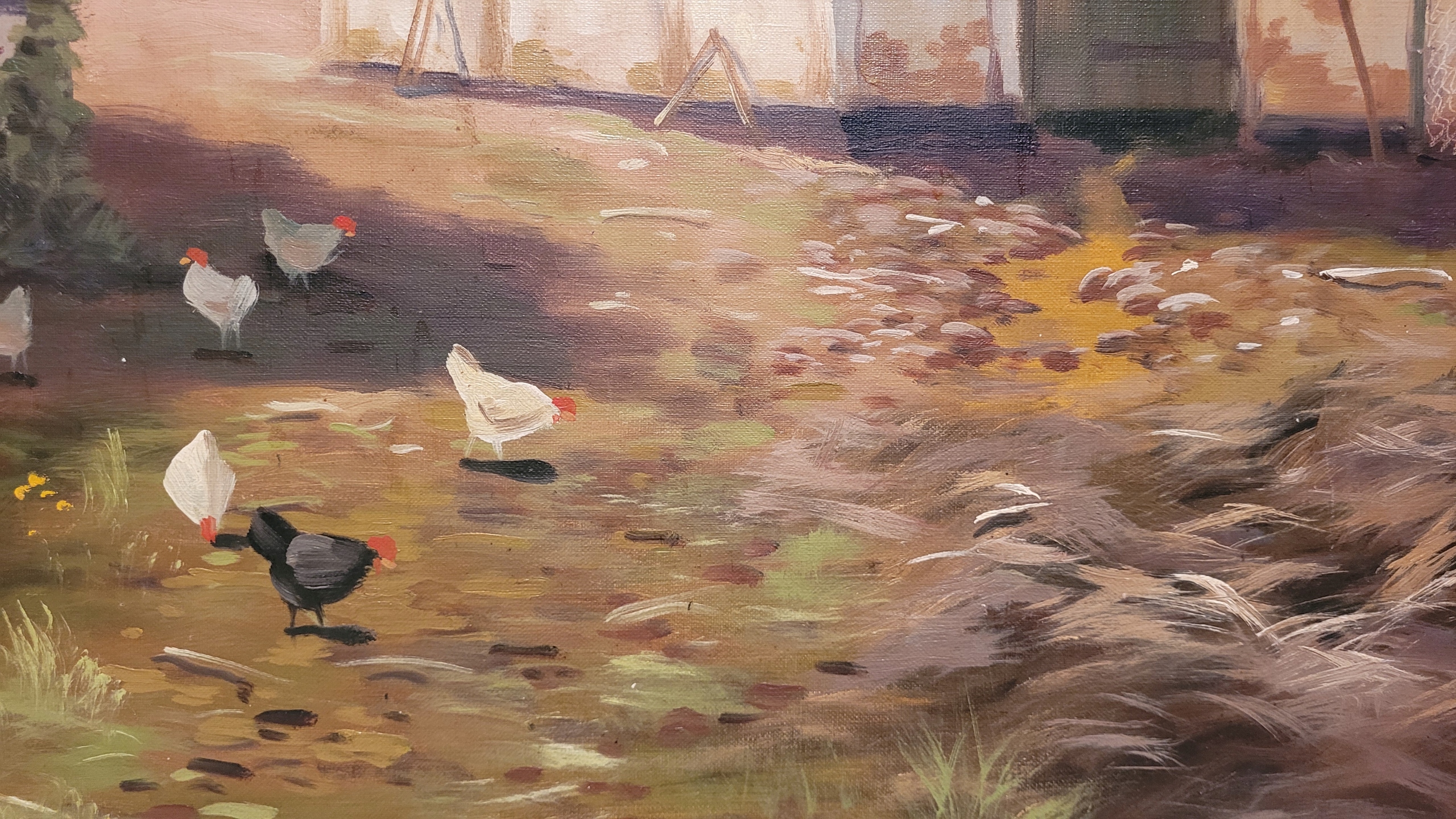 Предмет продажи - красивая, старинная картина маслом " ДЕРЕВЕНСКИЙ ПЕЙЗАЖ".