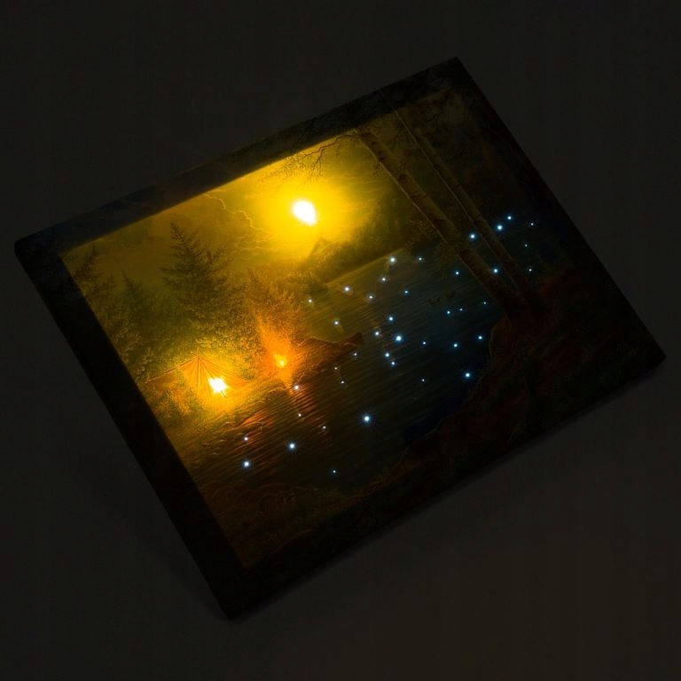 Создайте уютную атмосферу с помощью светодиодных картин с подсветкой. Романтический мотив горного озера на закате с 3 теплыми белыми светодиодами с мерцающим эффектом и 40 встроенными холодными белыми светодиодами из стекловолокна создадут приятное настроение и атмосферу в вашем доме. Декоративные изображения, напечатанные современными качественными фотоотпечатками, всегда станут изюминкой любого помещения и украсят обстановку. Благодаря работе от аккумулятора у вас нет надоедливого кабеля и вы можете повесить световую картину где угодно. Задняя часть готова к подвешиванию.Качественная фотопечать на холсте – это не только красивое украшение, но и отличный подарок.