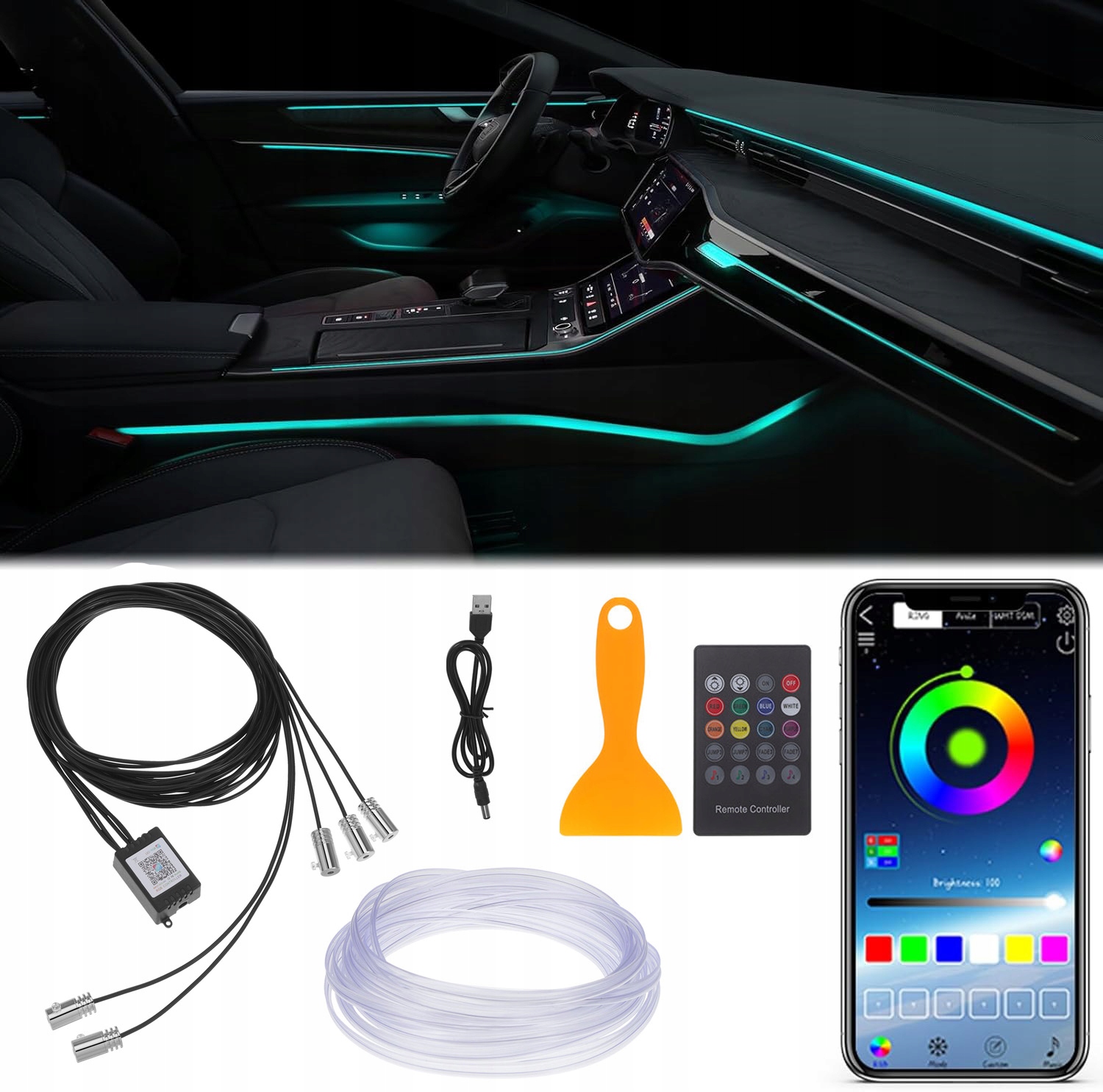 Освещение внутри светодиодного автомобиля RGB Оптический световой световой свет 8M применение