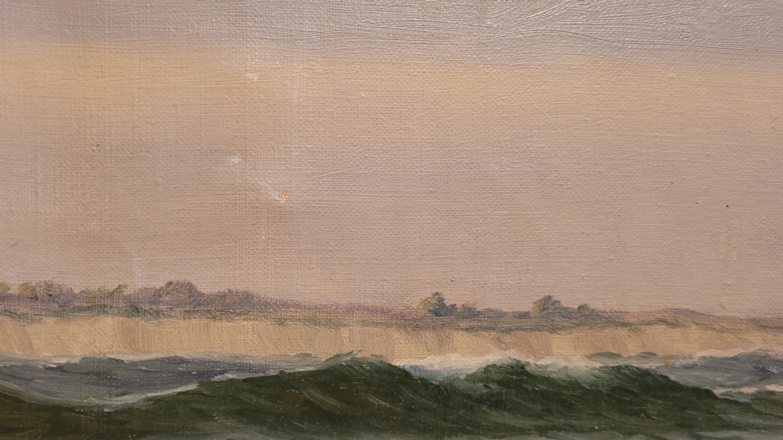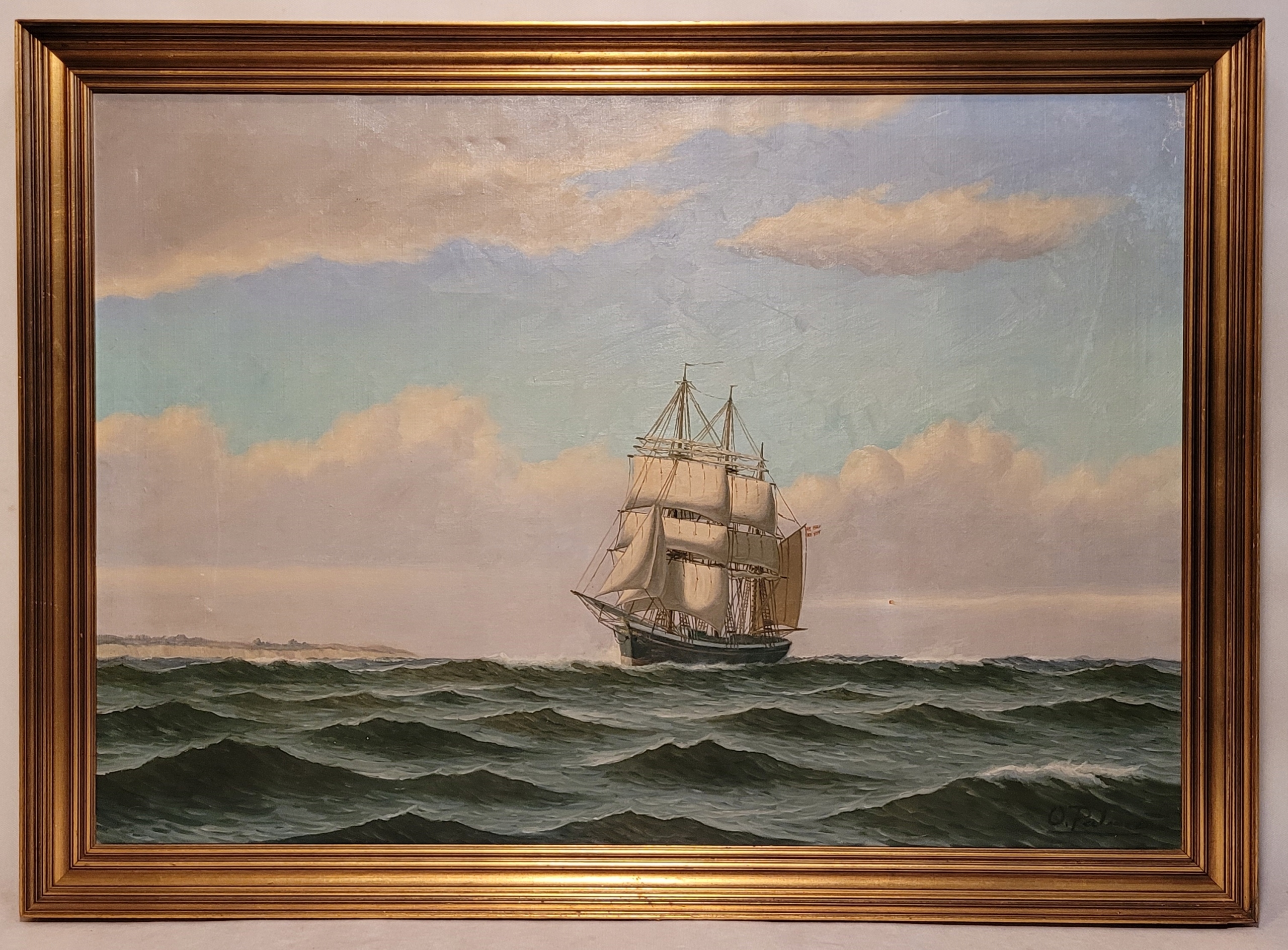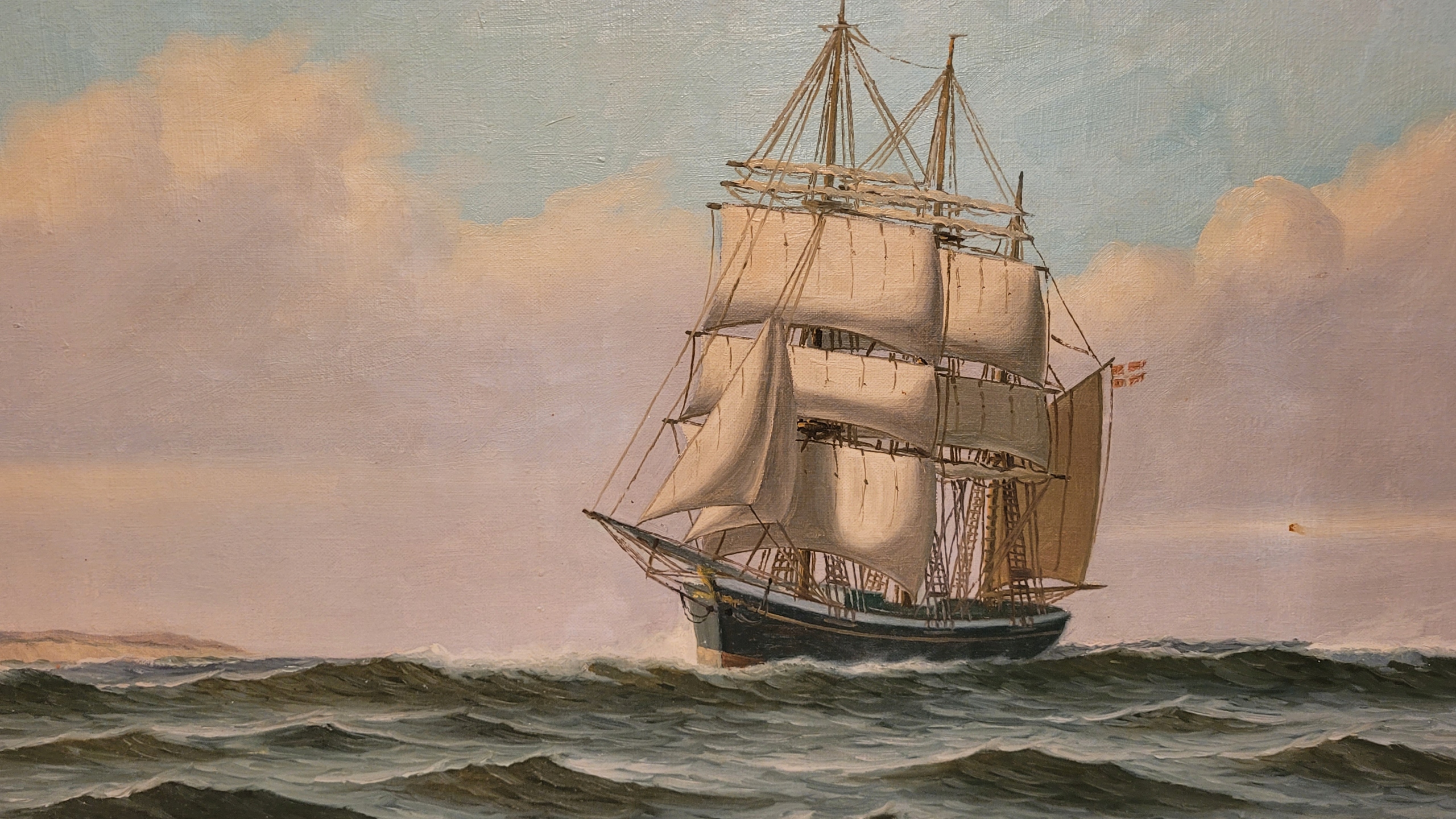 Предмет продажи — красивая старинная картина маслом "ПАРУСНЫЙ КОРАБЛЬ".
