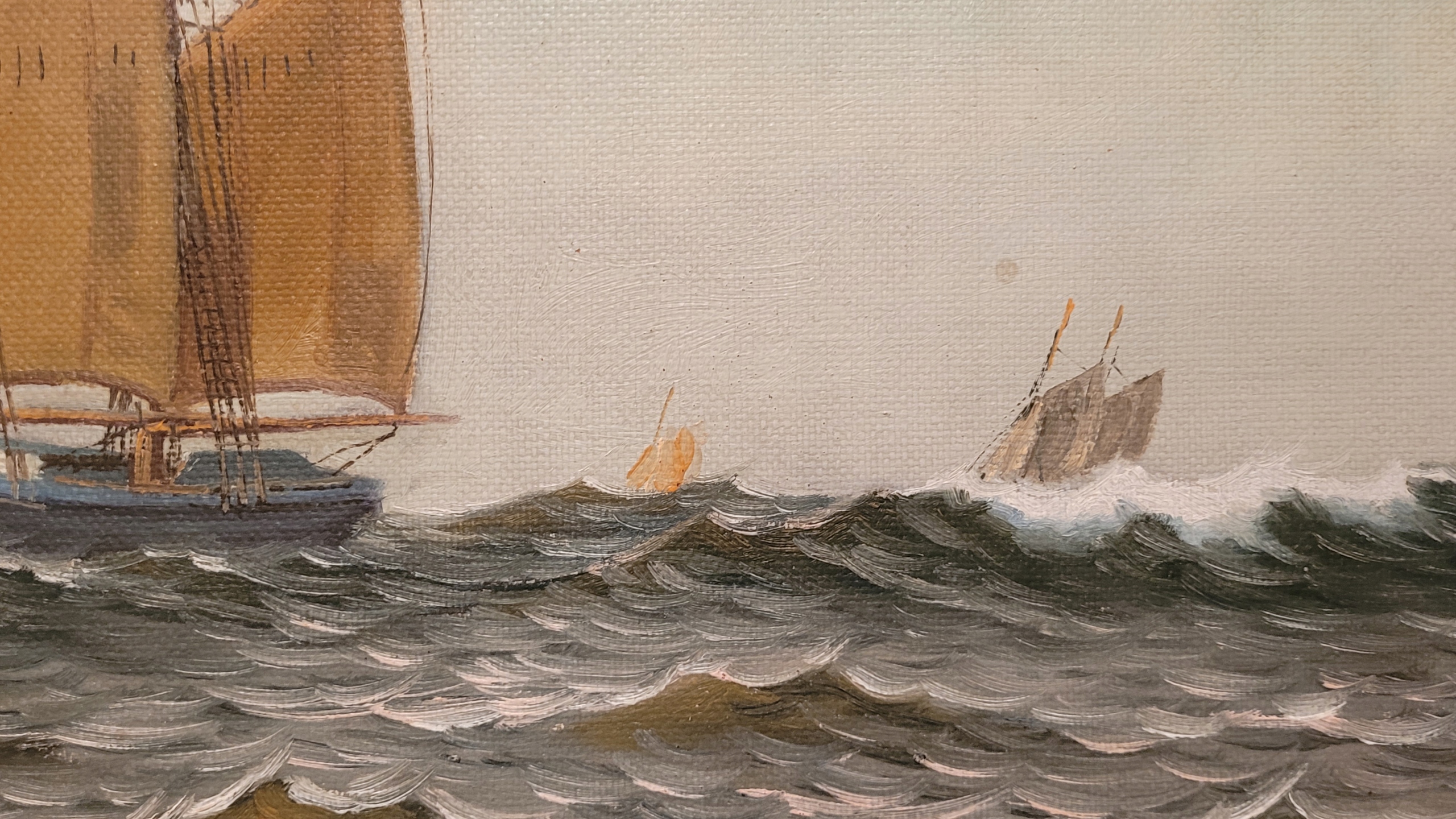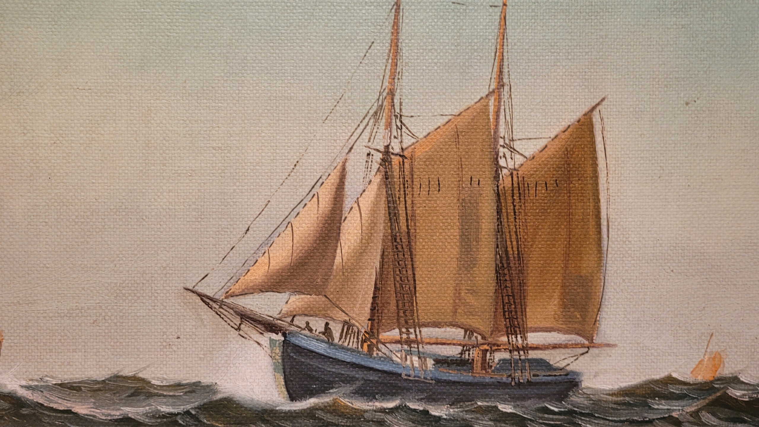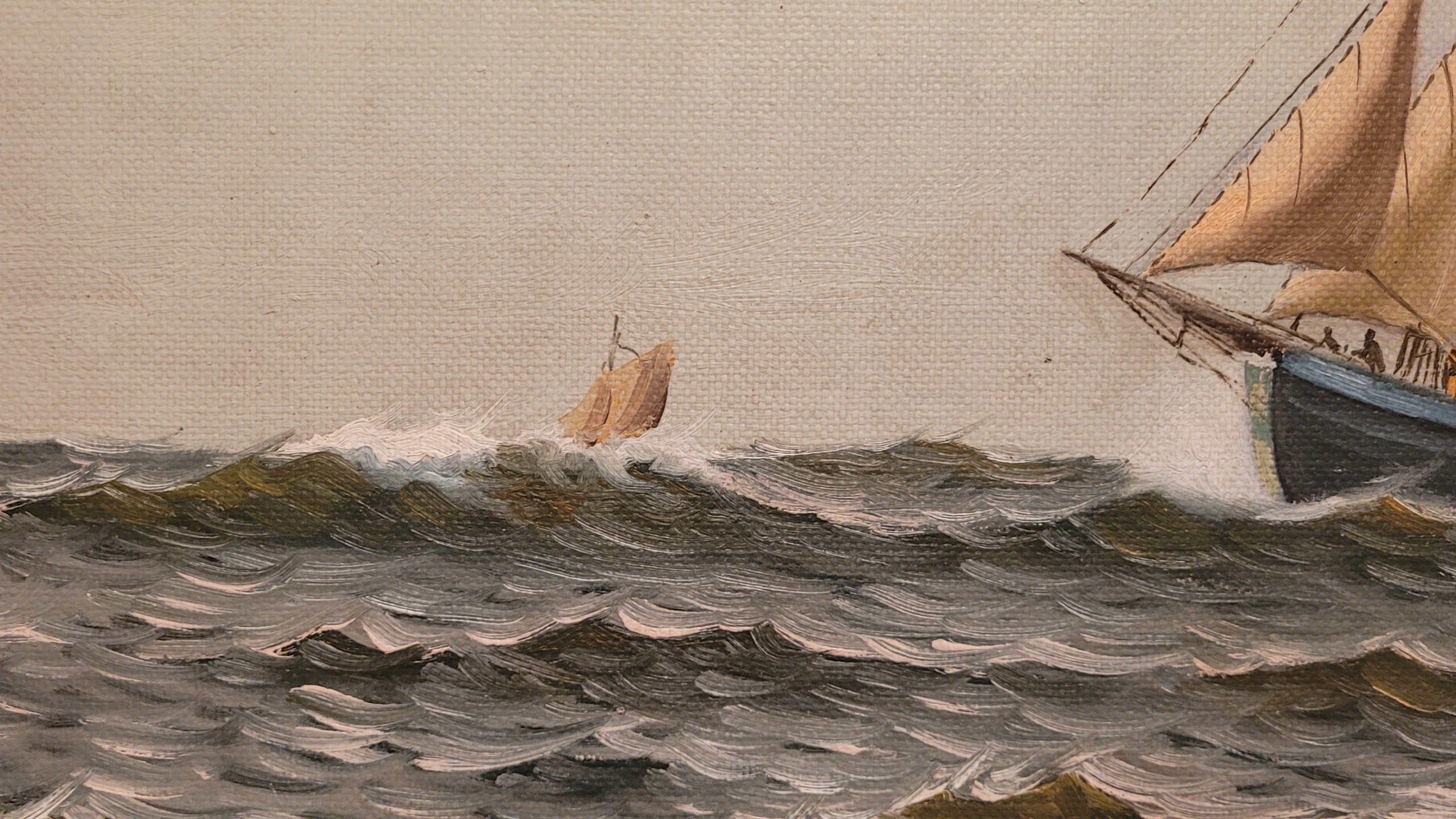 Объект продажи - красивая старая нефтяная картина "парусное судно".