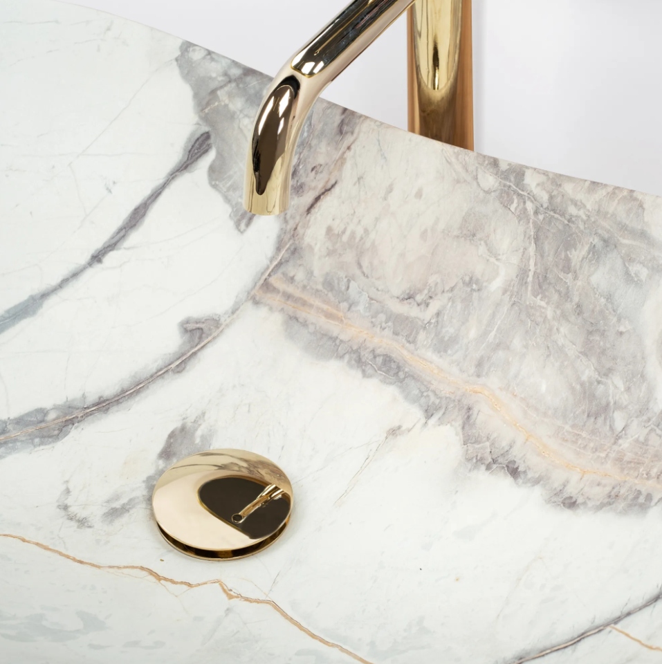 Благодаря техника, в которой выполняется ярусная верхняя часть умывальника, каждая деталь имеет неповторимый и неповторимый рисунок. Этот эффект имитирует натуральный камень.
