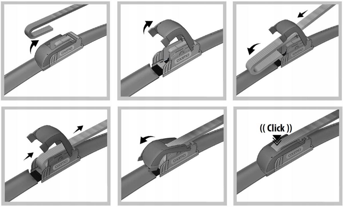 Дворники серии OXIMO WU12 характеризуются безрамной (шарнирной) конструкцией, важнейшей особенностью которой является что они гораздо лучше прилегают к лобовому стеклу, чем стандартные скелетонизированные дворники. Благодаря плотному и ровному прилеганию к стеклу они обеспечивают лучший сбор воды и грязи. Однако отсутствие стальной рамы позволило создать щетку стильной плоской формы и динамичной линии, что существенно улучшает аэродинамику стеклоочистителя, заметно снижая шум. создается потоком воздуха при быстрой езде.