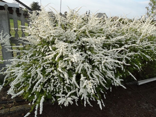 Интенсивно белые цветы, маленькие, собранные в навесах, полностью покрывая прошлогодние побеги, вытекают из апреля.