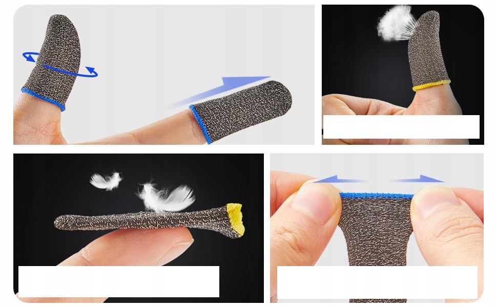 Удобный материал: крышки пальцев изготовлены из проводящего серебряного волокна и материала спандекса, благодаря которому они обеспечивают большую чувствительность и удобство при использовании экрана мобильного телефона. Они могут изолировать пот рук и контакт с экраном, не являются SLIP, предотвращают падения, устойчивы к масле, предотвращают отпечатки пальцев и помогают улучшить опыт игры, обеспечивая впечатляющий и плавный опыт игры.