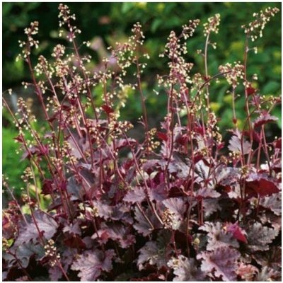Энергично растущий многолетник, образующий куртины высотой 30 см. Листья красивой формы, сердцевидные, интенсивно вишнево-красные, долго декоративны. Стройные соцветия из мелких бежевых цветков высотой 60 см. Растения подходят для посадки на клумбах, для создания бордюров, для посадки в альпинариях, а также в контейнерах для украшения террас и балконов, а также для покрытия больших площадей. Высаживать большими группами по 10–20 штук