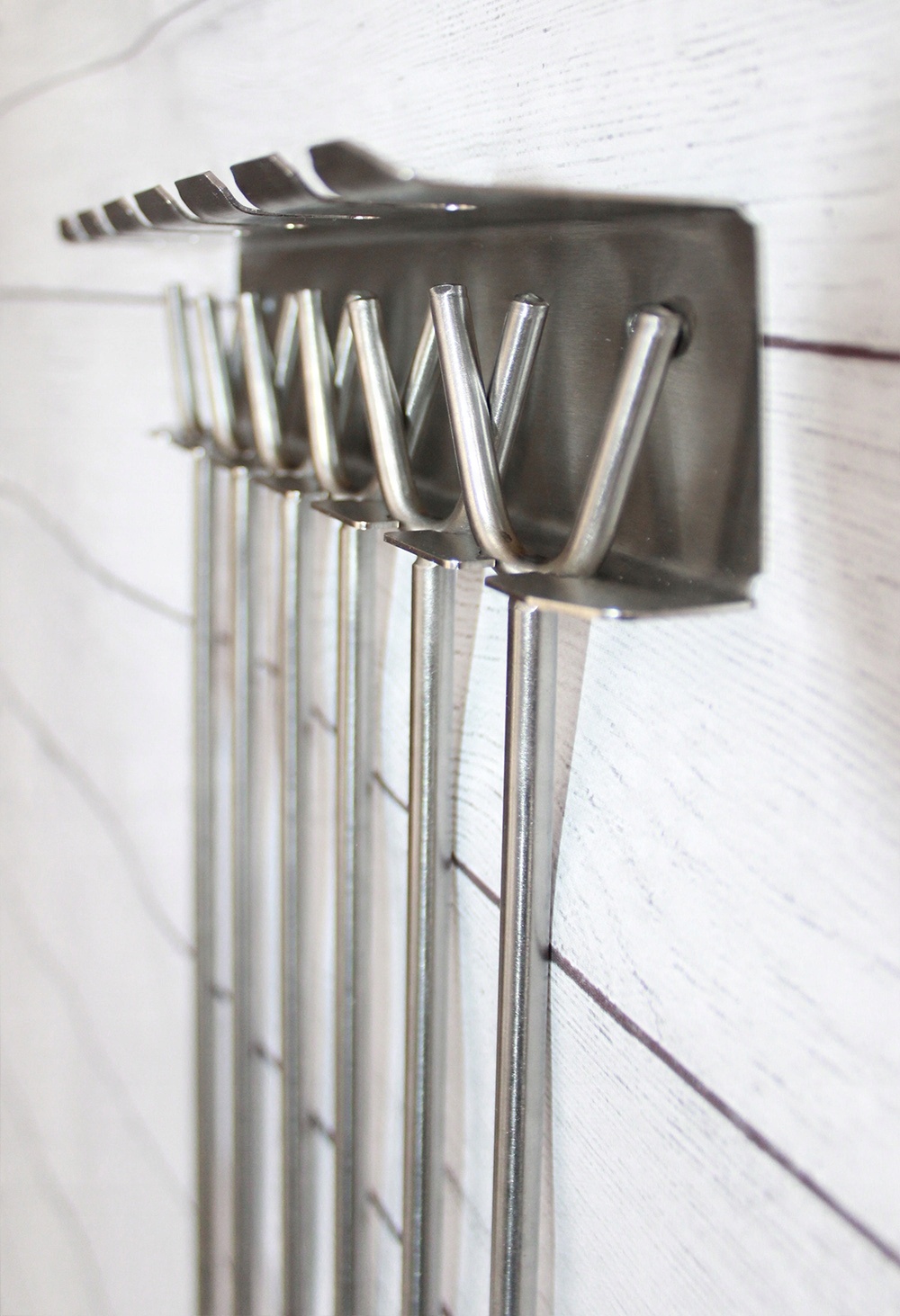 Они имеют острые концы, удобны для набивания колбас. Большая деревянная ручка позволяет удобно жарить колбаски и защищает от ожогов.