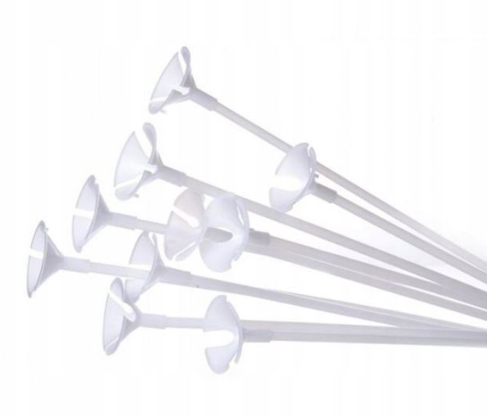 ПАЛИЧКИ ДЛЯ ПОВІТРЯНИХ КУЛЬ з кошиками, білі, довгі, 40 см, набір 10 шт. день народження