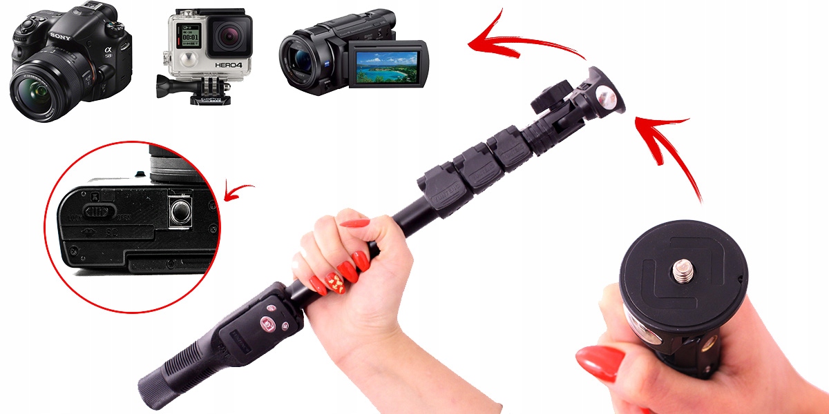 Палка для селфи позволит вам профессионально запечатлеть самые интересные моменты, которыми вы сможете похвастаться перед другими. Держатель идеально подходит для съемки автопортретов и снимков с большего расстояния и с более высокой точки зрения. Монопод подходит ко всем фотоаппаратам и фотоаппаратам со стандартным креплением 1/4" весом до 850 грамм. Специальный универсальный колпачок позволяет разместить на штативе любой телефон в диапазоне от 4,7 см до 8,0 см. Держатель универсальный. и подходит для большинства устройств мобильных устройств Samsung, Nokia, HTC, Sony, Xiaomi, Huawei GoPro и других компаний-производителей устройств. Монопод имеет встроенное небольшое зеркало, благодаря которому вы можете управлять кадром своего селфи или кадром. выстрел. В выдвинутом положении телескопическая ручка позволяет делать фотографии с расстояния 125 см.