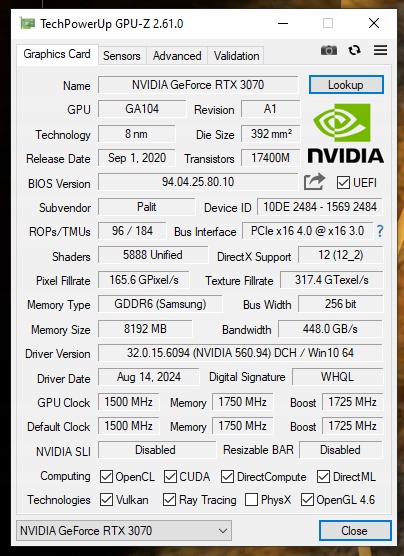 Palit Geforce RTX 3070 JetStream предлагает новейшие технологии, такие как трассировка лучей. Охлаждение на основе технологии Turboun 3.0 эффективно и тихо. Контролируемая подсветка RGB позволяет игрокам регулировать цвет светодиодной подсветки, что приводит к великолепному игровому образу