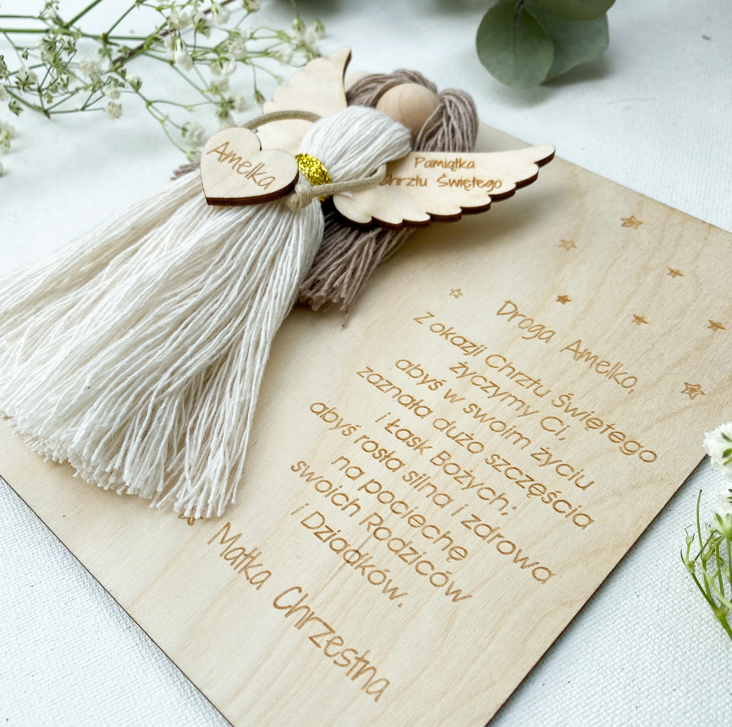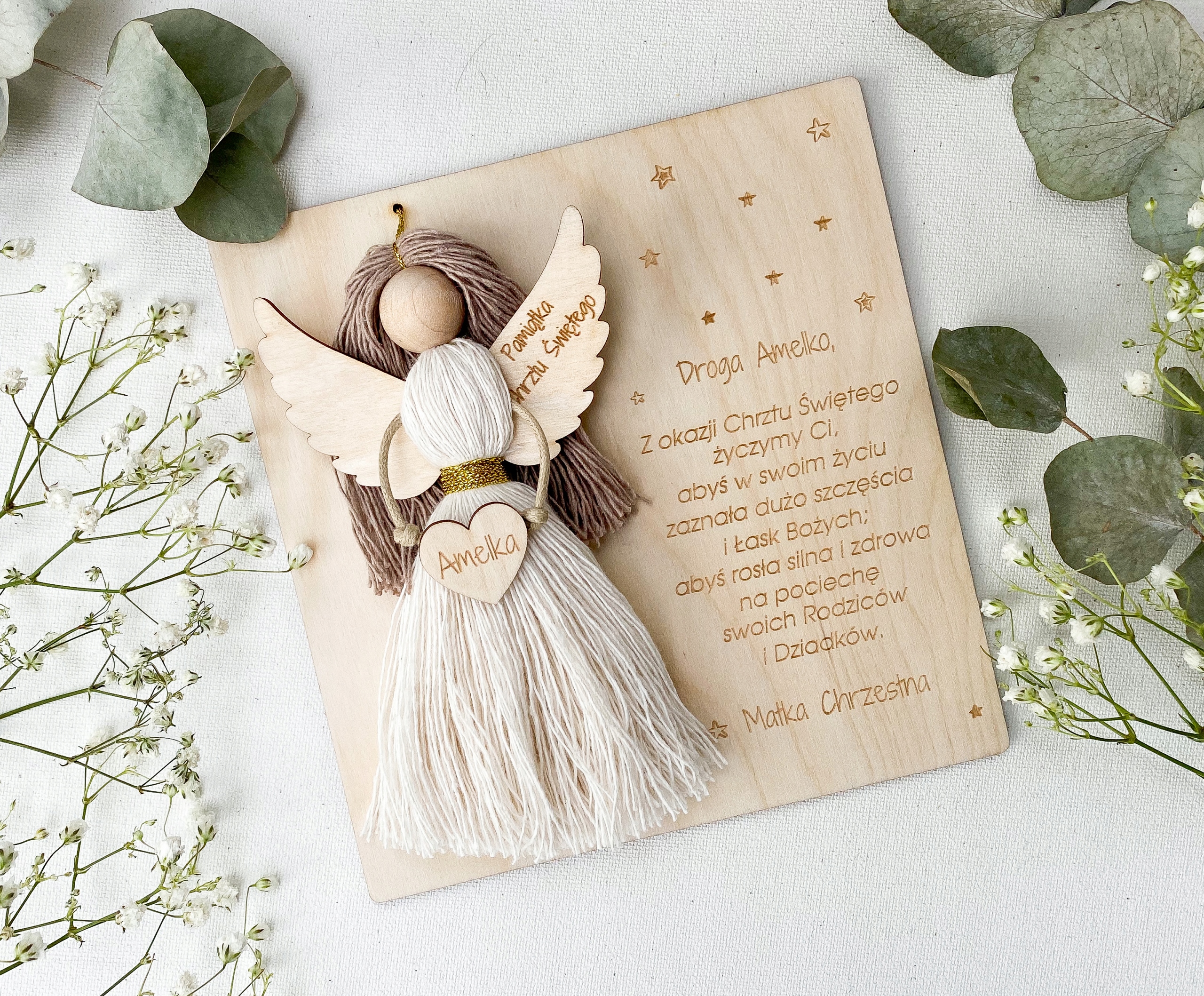 Деревянная открытка и ангелочек ручной работы из хлопковой веревки.
