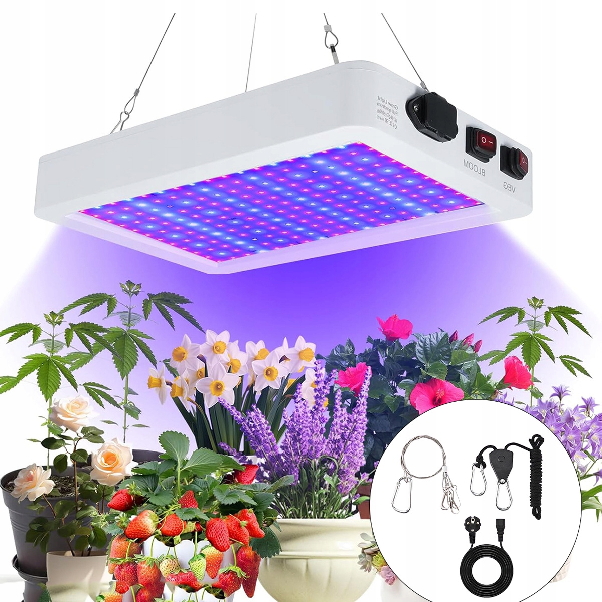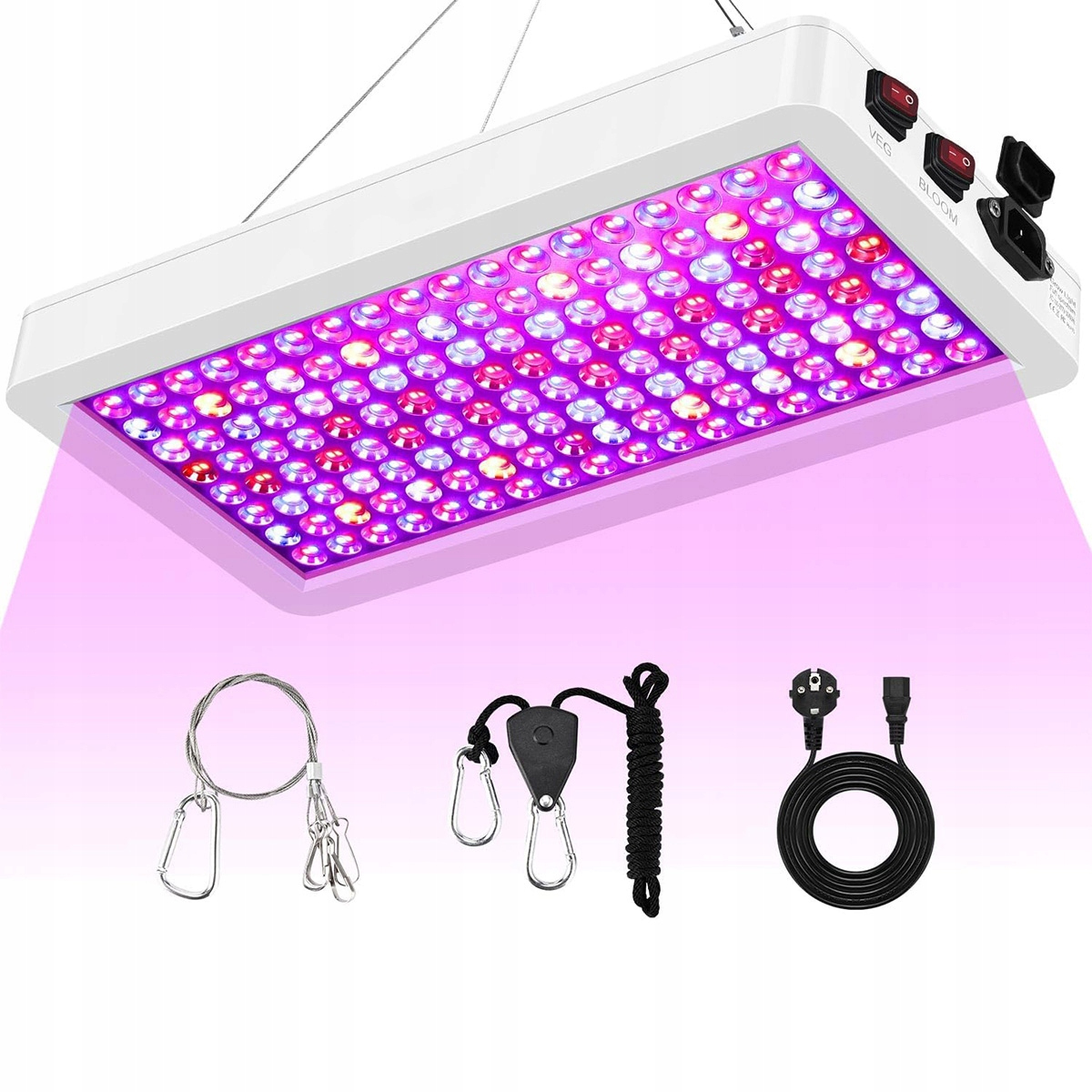 Лампа для выращивания растений хорошо нагревает, долговечна и идеально контролирует тепло. Корпус ПК делает осветительную панель более долговечной и служит дольше. Освещение для растений высотой 60 см, рекомендуется повесить на высоте около 20-76 см.