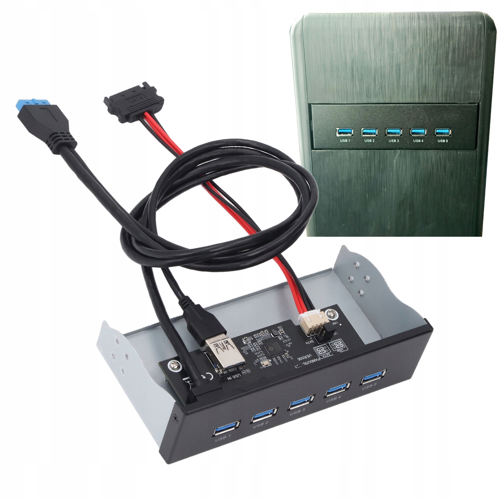 4. Установка: это 5,25 -В концентраторах передней панели можно установить в неиспользованном месте оптического привода и обеспечивает передний USB -порт, который является удобным и практичным.