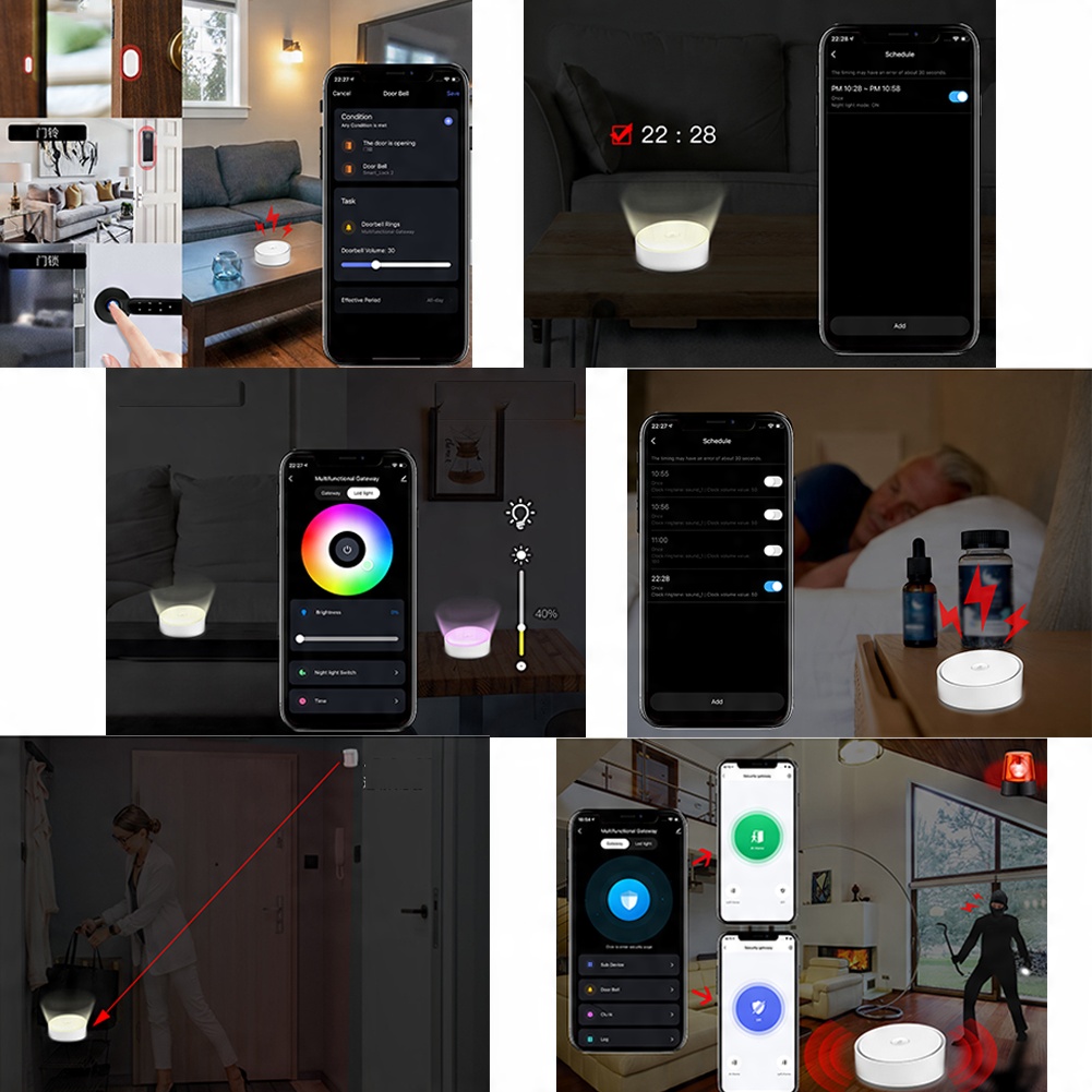 разумно подключите ворота с интеллектуальными дверными датчиками, дверными замками и колокольчиками в приложении! Светодиод, яркость RGB и регулировка цвета