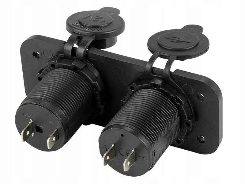 Гнездо прикуривателя автомобиля самосборное с 2 портами USB и 2 защитными клапанами.