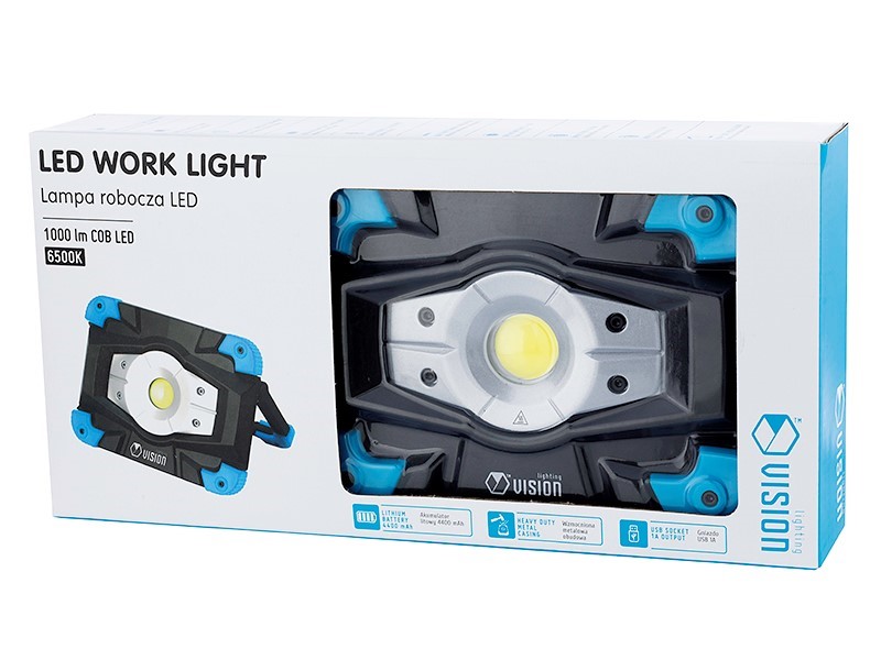 Панельная рабочая лампа 10Вт COB LED, аккумуляторная, 1000 лм, IK08, IP54 + магнитный держатель