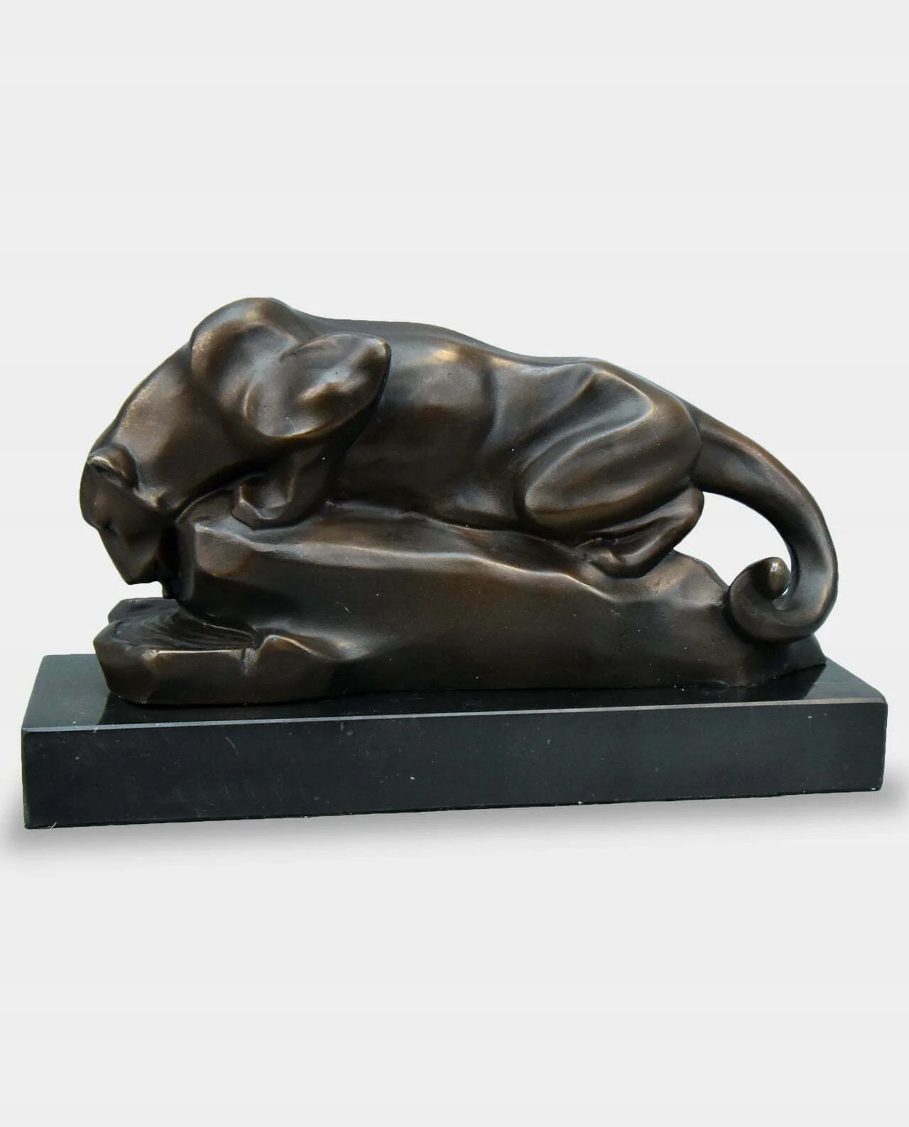 Модернистская бронзовая скульптура, изображающая пантеру на питьевой воде. Красивая, подписанная скульптура, сделанная из эксклюзивного материала, очень точно, с вниманием к наименьшим деталям. Пометочно на основе черного мрамора. Фигура производит огромное эстетическое впечатление и имеет вечный стиль. Подходит много интерьеров.