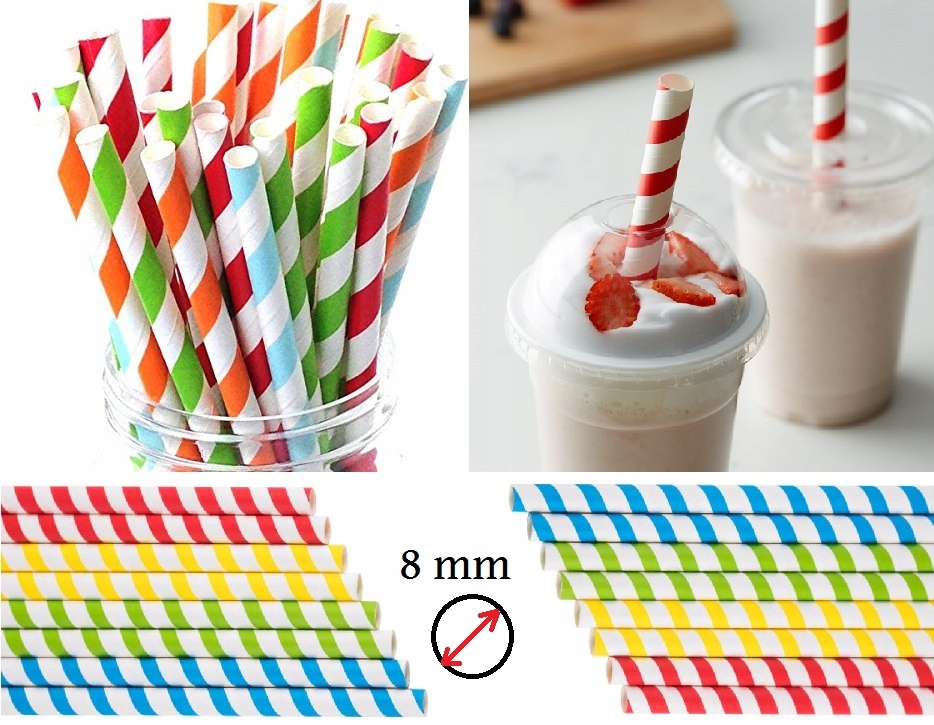 БУМАЖНЫЕ СОЛОМОЧКИ В ЦВЕТНУЮ ПОЛОСКУ ТОЛЩИНОЙ 8мм