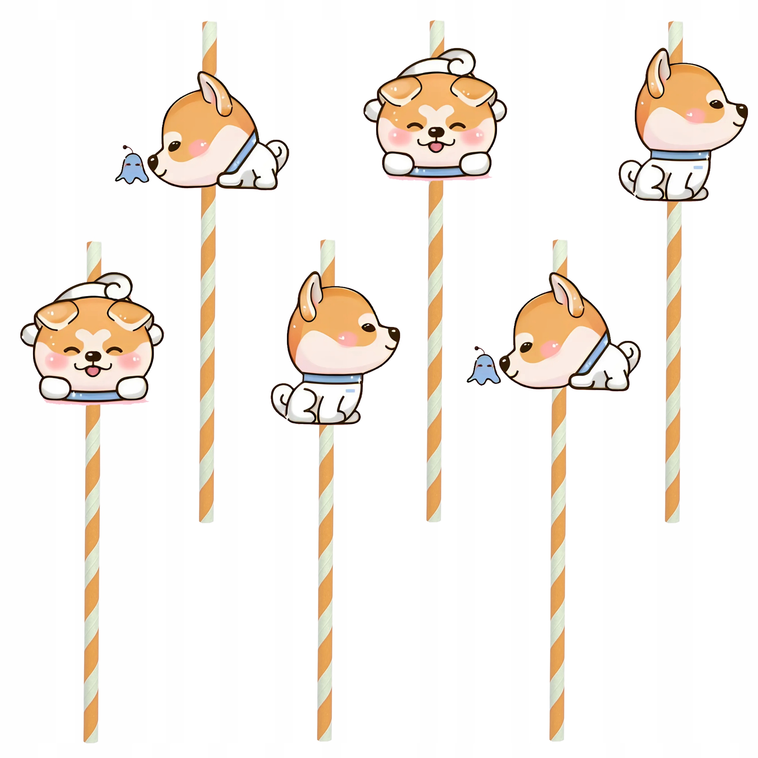 Бумажная соломинка Huskey Shiba Inu День рождения 12 шт.