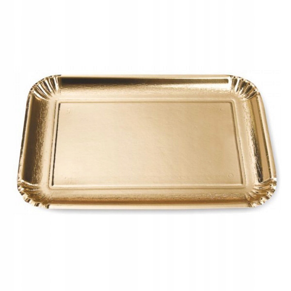 Поднос из жесткого картона Elite золотого цвета. «Правая» сторона покрыта золотой фольгой. Высококачественный продукт, предназначенный для демонстрации, упаковки и транспортировки различных видов пищевых продуктов.
