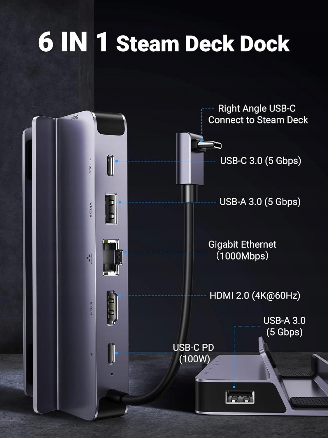 ✅6 в 1 USB C Dock : докчинг -станция расширяет много портов для паровой колоды 1 x hdmi 4k@60 Hz, 1 x gigabit. Зарядка порта 100 Вт USB c.