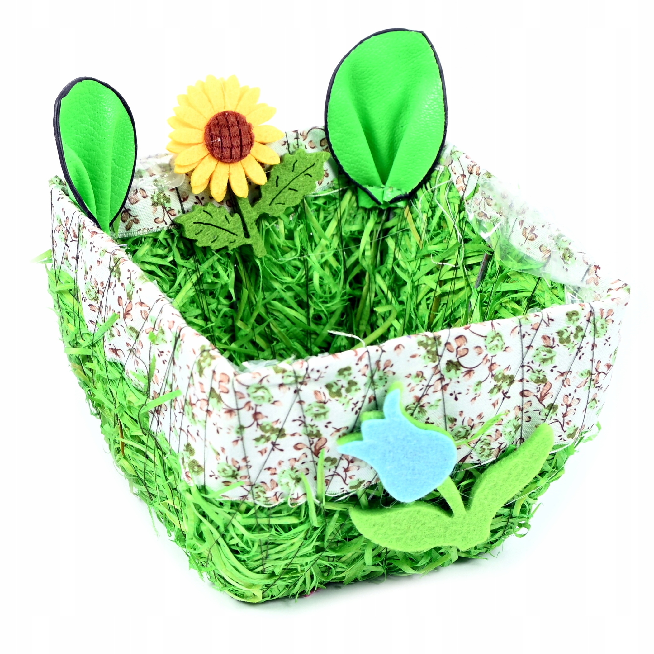 Пасхальная корзинка из металлического каркаса и пластика, имитирующего сено.