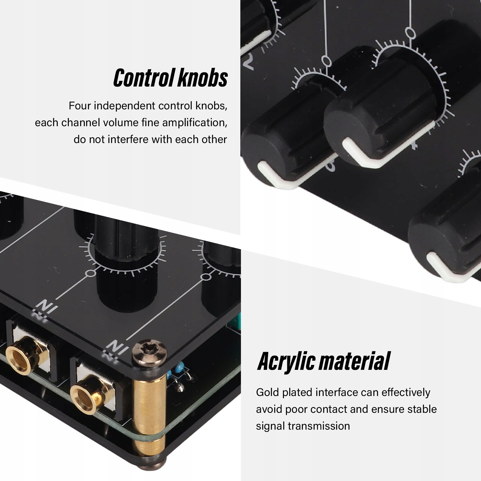 5. Премиум-материал: стереомикшер изготовлен из акрилового материала, позолоченный интерфейс позволяет эффективно избежать плохого контакта и обеспечить стабильную передачу сигнала.