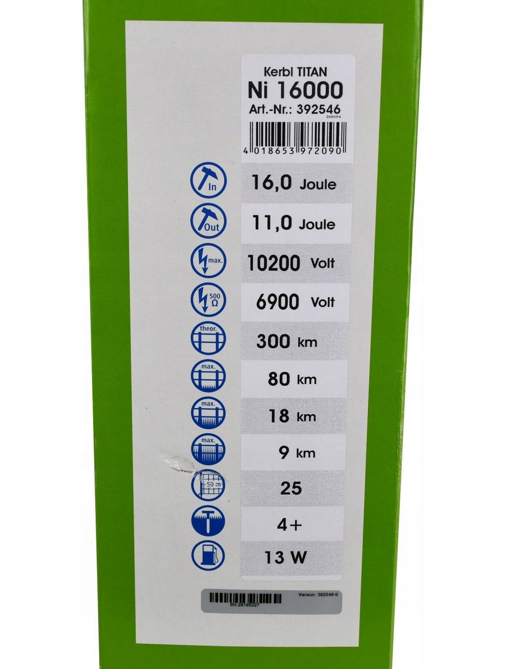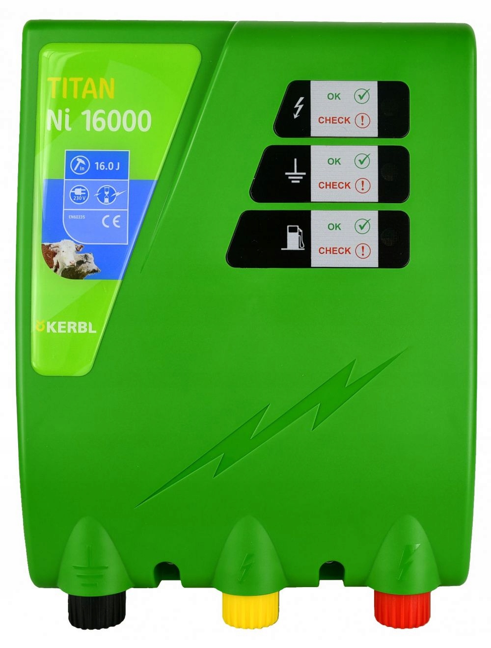 - оснащен импульсной технологией KERBL TITAN Ni 16000– с микропроцессорным управлением – намного безопаснее, энергосберегающее и, в случае сильного роста, значительно лучшая защита благодаря очень высокому напряжению ограждения