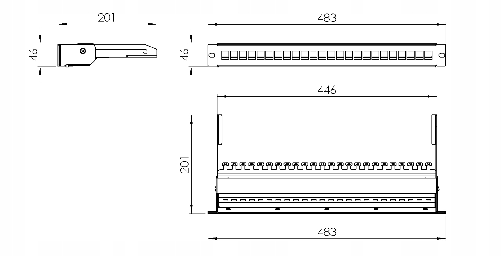 - Патч модульная панель 19" 1U 24 порта, выдвижная, черная