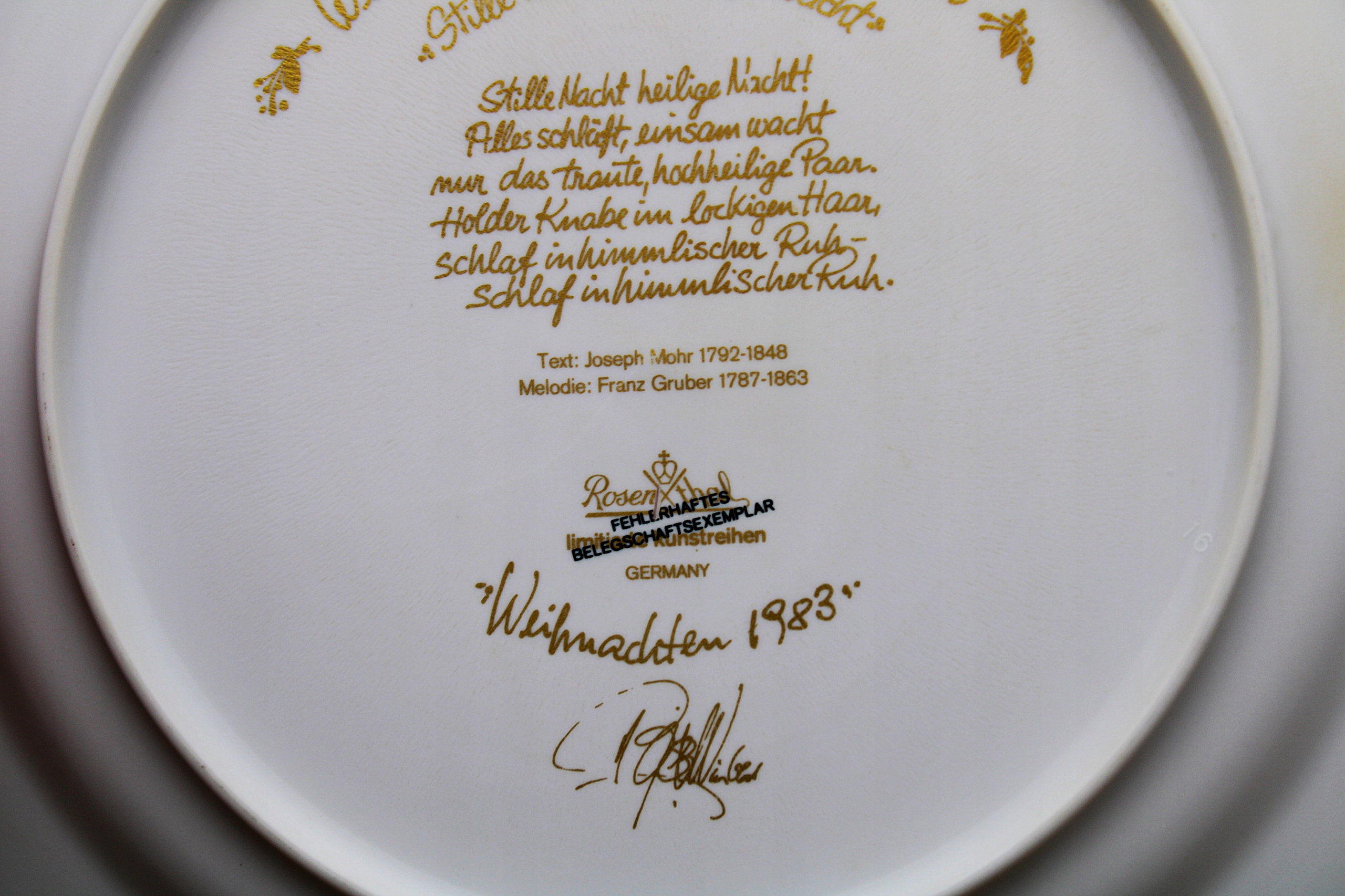 РЕКОМЕНДУЮ ДЕКОРАТИВНУЮ ТАРЕЛКУ, РАЗРАБОТАННУЮ БЬОРНОМ ВИНБЛАДОМ ИЗ ФАРФОРОВОГО ЗАВОДА РОЗЕНТАЛЬ В ЗЕЛЬБЕ, БАВАРИЯ, 1983 ГОДА, УКРАШЕННАЯ ВРУЧНУЮ СОСТОЯНИЕ, КАК ПОКАЗАНО НА СКАНИРОВАНИИ, ОЧЕНЬ ХОРОШЕЕ