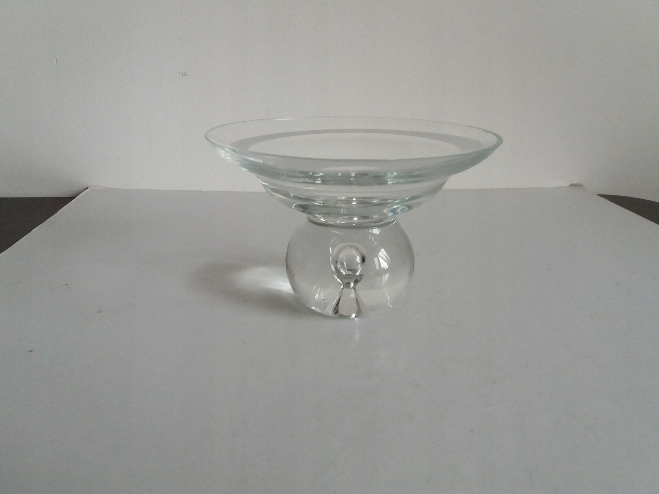 Стеклянное патер с фото и высота 10 см. Диаметр Чарки 15,3 см. Основой является мяч с диаметром 7 см. Тяжелый и стабильный. На фотографии видимый повреждение стекла на раноме. Видимо только очень близко. Они не острые. Я рекомендую и приглашаю вас на аукцион.