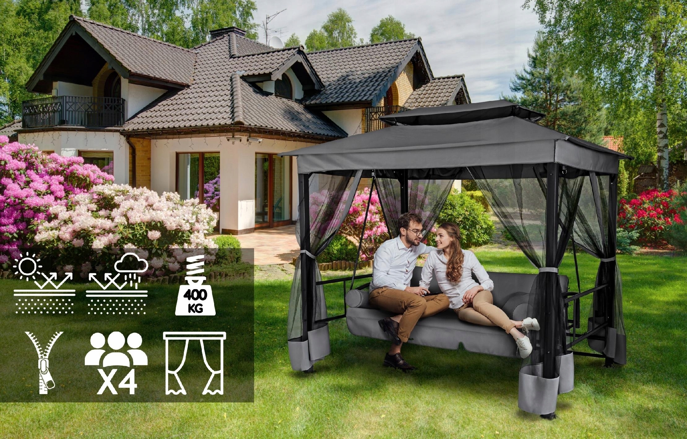 Стабильный свинг оснащен вентилируемой крышей , которая защищает от избыточного солнца. Очень практичная функция - это комальная сеть , которая позволяет вам наслаждаться отдыхом на открытом воздухе без неприятностей, связанной с наличием насекомых!