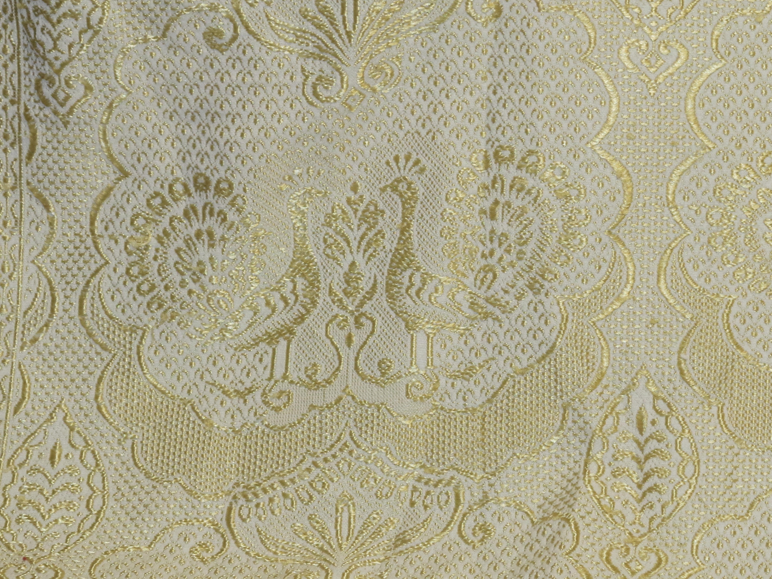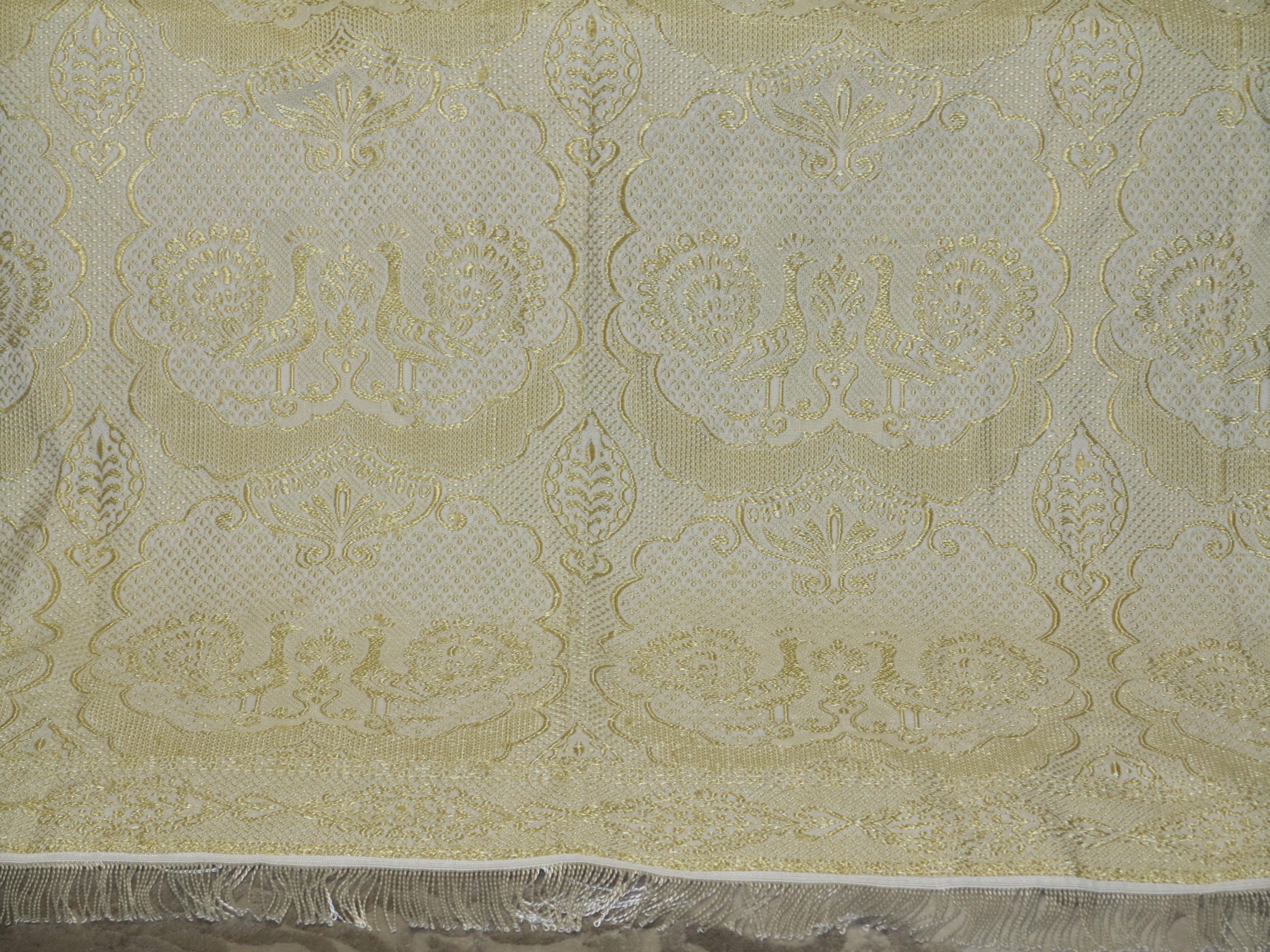 ОЧЕНЬ КРАСИВОЕ СТРУКТУРНОЕ ПОКРЫТИЕ В СВЕТЛО-ЗОЛОТОМ И ЖЕМЧУЖНО-БЕЛОМ. СОГЛАСНЫЕ УЗОРЫ НА ТКАНИ - ОСНОВНОЙ МОТИВ - ПАРЫ ПАВЛИНОВ
