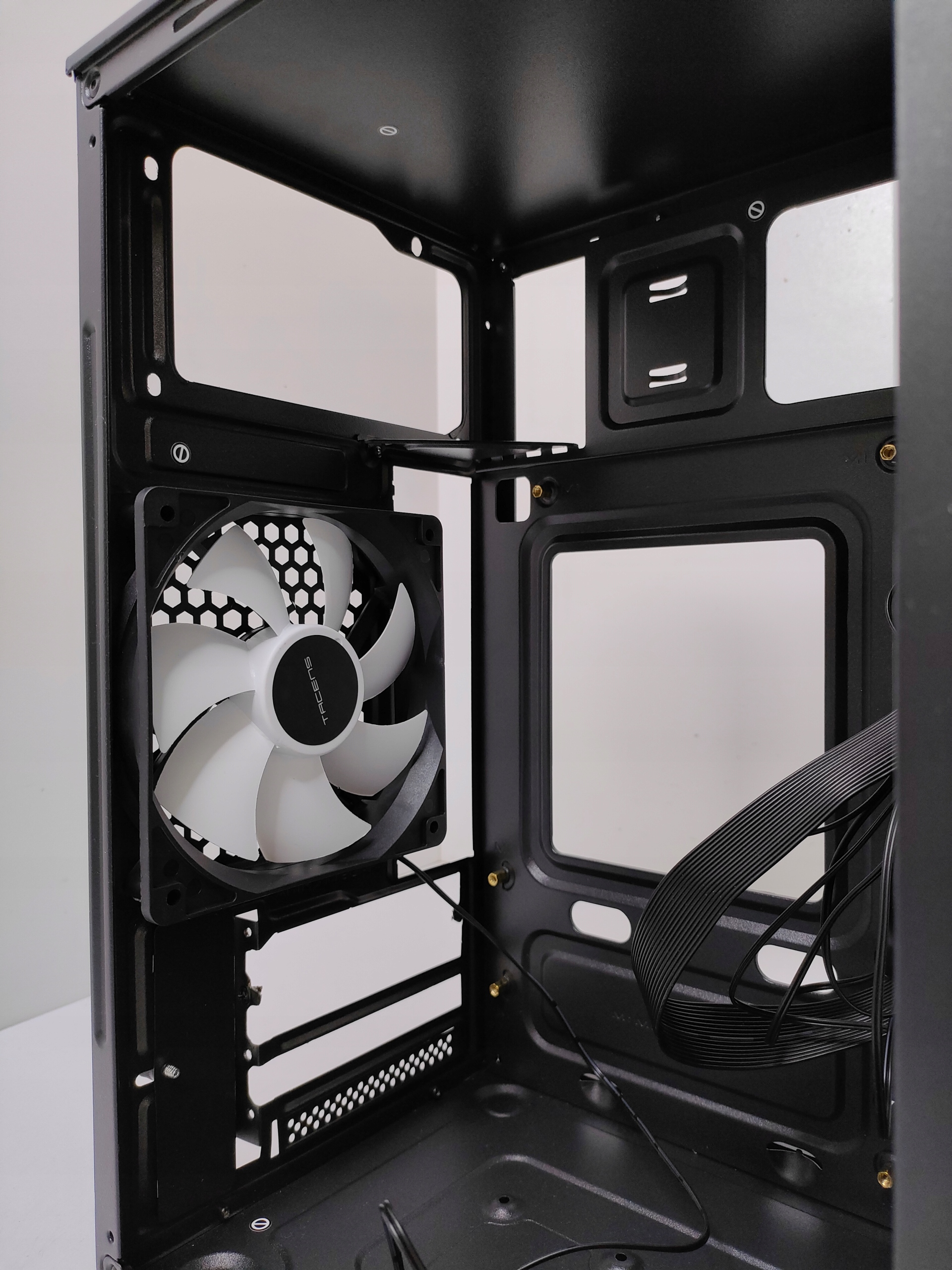 - Благодаря размеру расширенного корпуса, он стандартно оснащен чрезвычайно тихим задним вентилятором с длиной 12 см, который может быть расширен до 3 вентиляторов 12 см, 120 мм жидкого охлаждающего кронштейна. Процессор охладитель (до 160 мм высотой), обеспечивающий экстремальное охлаждение.
