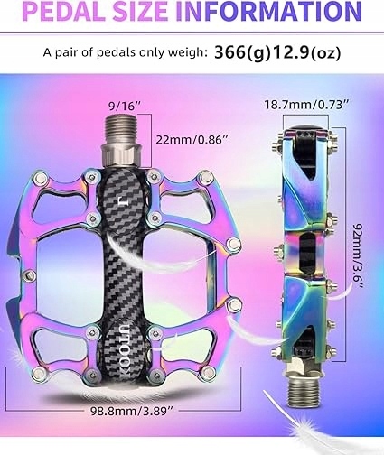 - Педали самостоятельного, зажигающего для дорожного велосипеда : ультра -свет, красочная педаль + анти -скольжение. Подходит для стандартных оси 9/16 дюймов, таких как автомобили вне дороги, дорожные велосипеды, горные велосипеды, складные велосипеды и т. Д. (Совместим с системой SPD Shimano - SL)