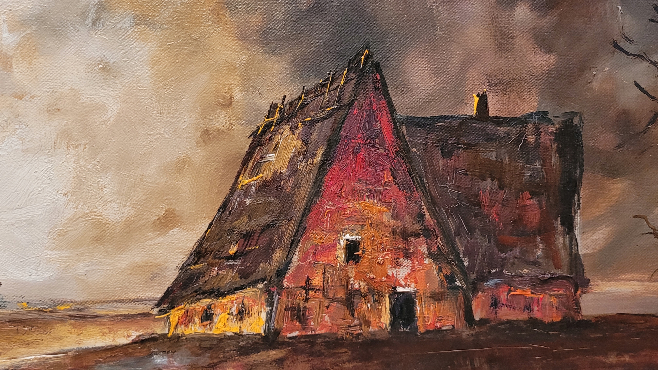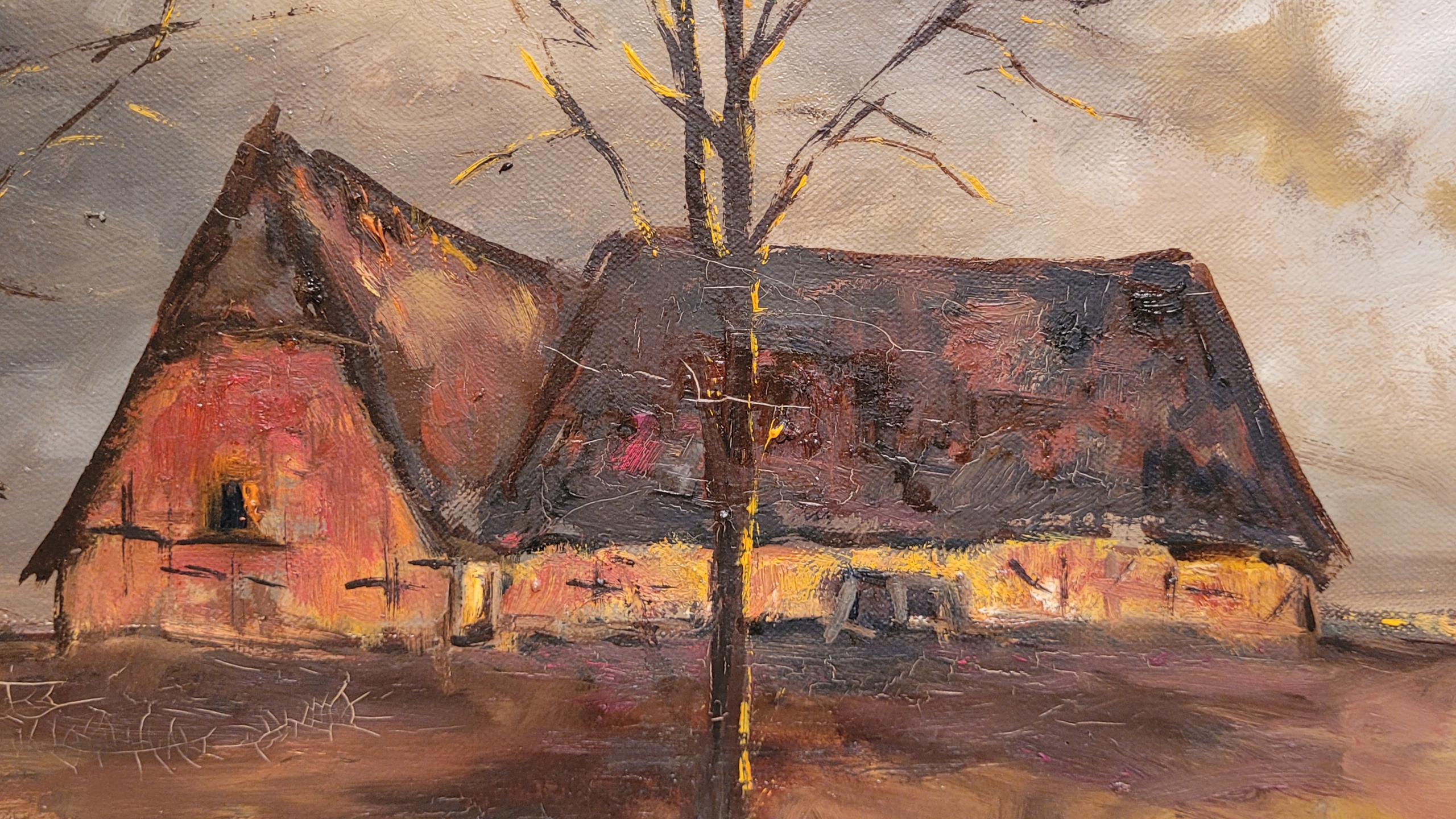 «Пейзаж с домами», красивая, подписанная нефтяная картина.