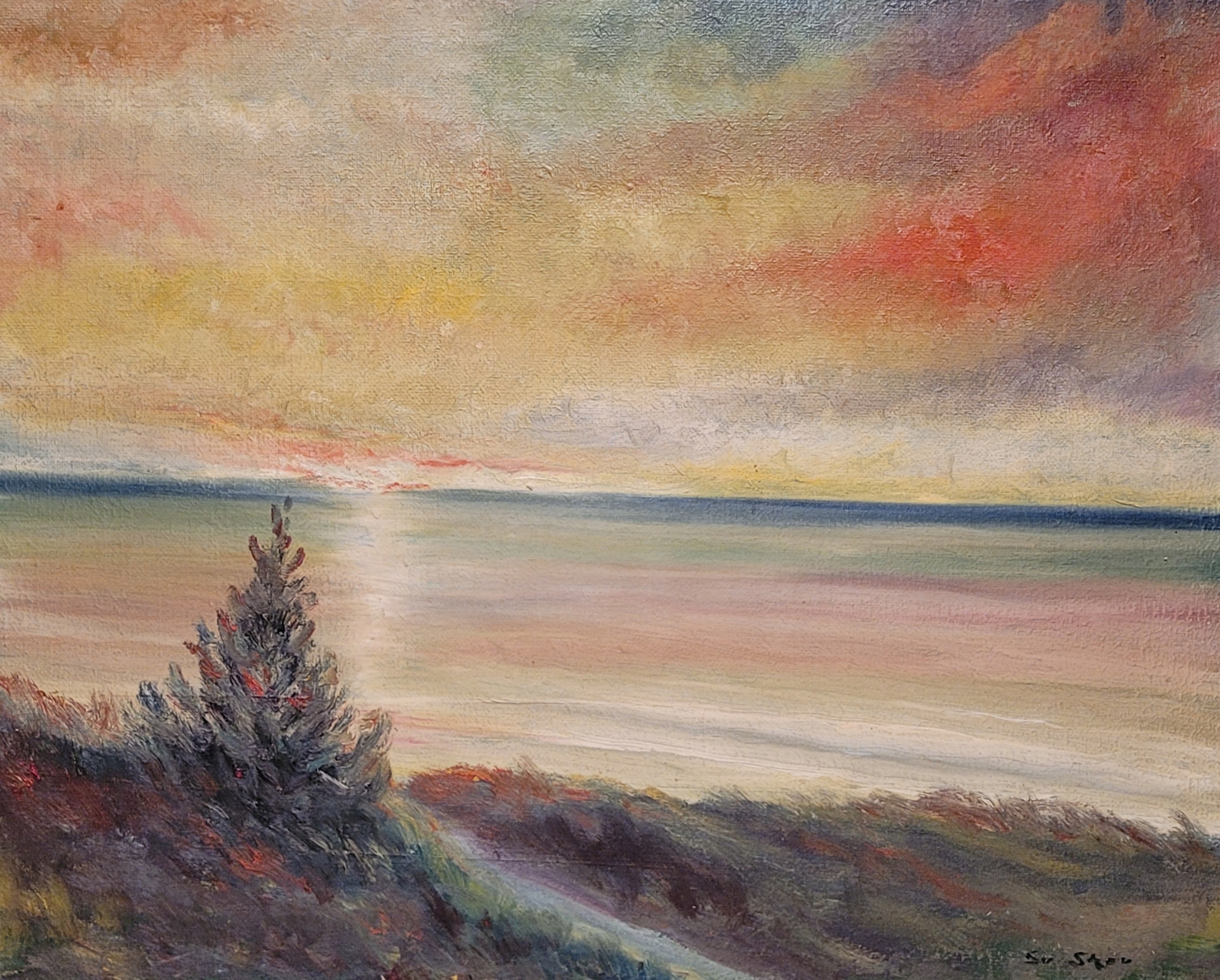 «Ландшафт с морем» красиво, подписано изображение нефти с 1962 года.