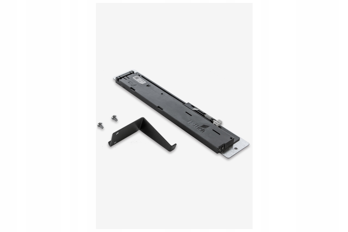 Комплект состоит из одного механизма открытия по нажатию, одного активатора и 2 винтов. Механизм открытия прикреплен к боковой стенке под верхней направляющей. Активатор крепится к рамке. Устройство можно установить в любое время, даже в готовый шкаф.