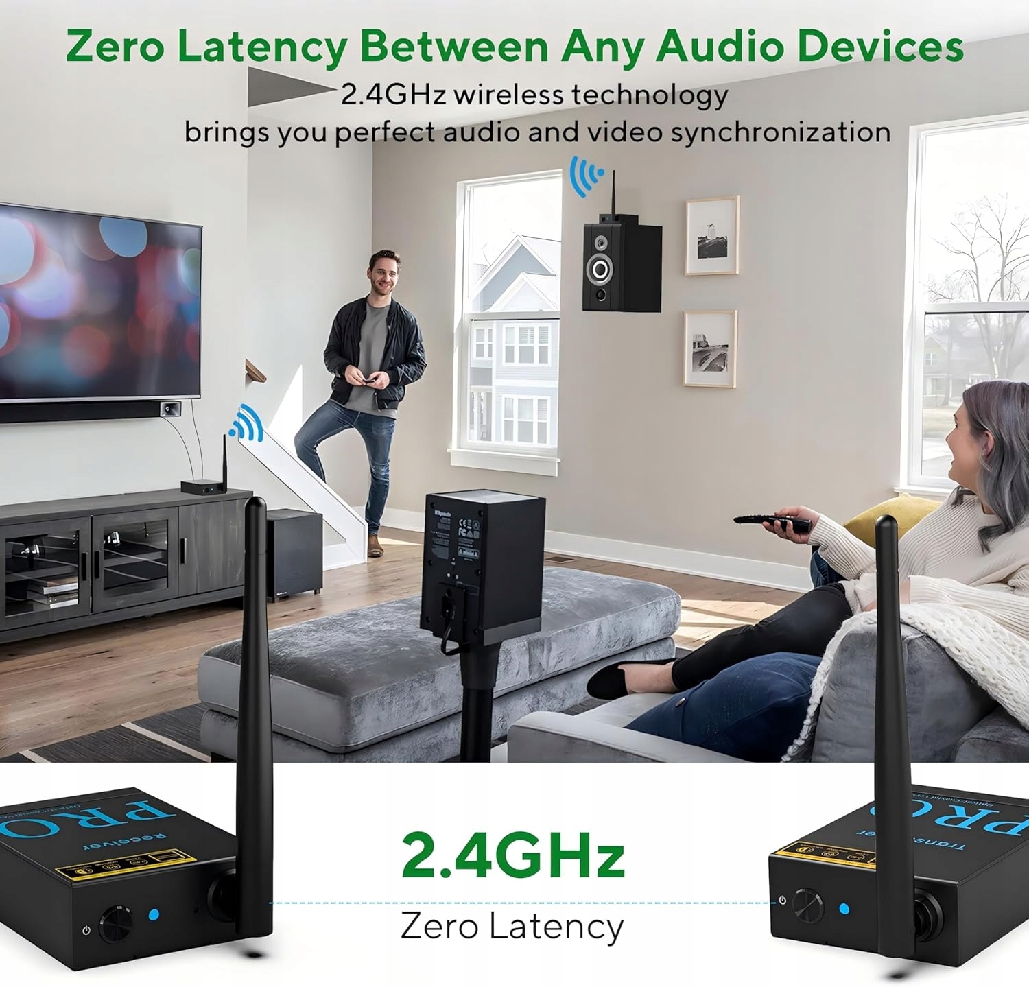 - 【Качество бескладиного звука HiFi и низкой задержки 20 мс】 беспроводной аудиоситтер оснащен аудиотехнологией высокого разрешения 192 кГц/24 битов, чистые и стабильные, без шума, что превышает стандарты качества звука традиционных компакт -дисков. И благодаря стабильной беспроводной технологии, 2,4 ГГц беспроводной концентрический передатчик достигает сверхпрочной задержки на 20 мс для передачи звука, которая действительно достигает синхронизации звука. Это обеспечивает лучший развлекательный опыт при прослушивании музыки дома или в офисе. Примечание: когда звук тихий, есть шум, и он тонкий.